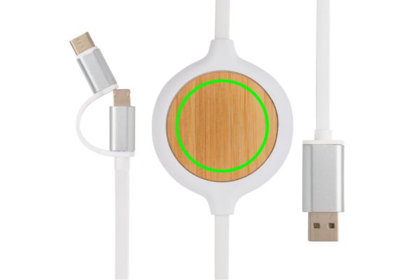 Logotrade werbemittel das Foto: 3-in-1 Kabel mit 5W Bambus Wireless Charger