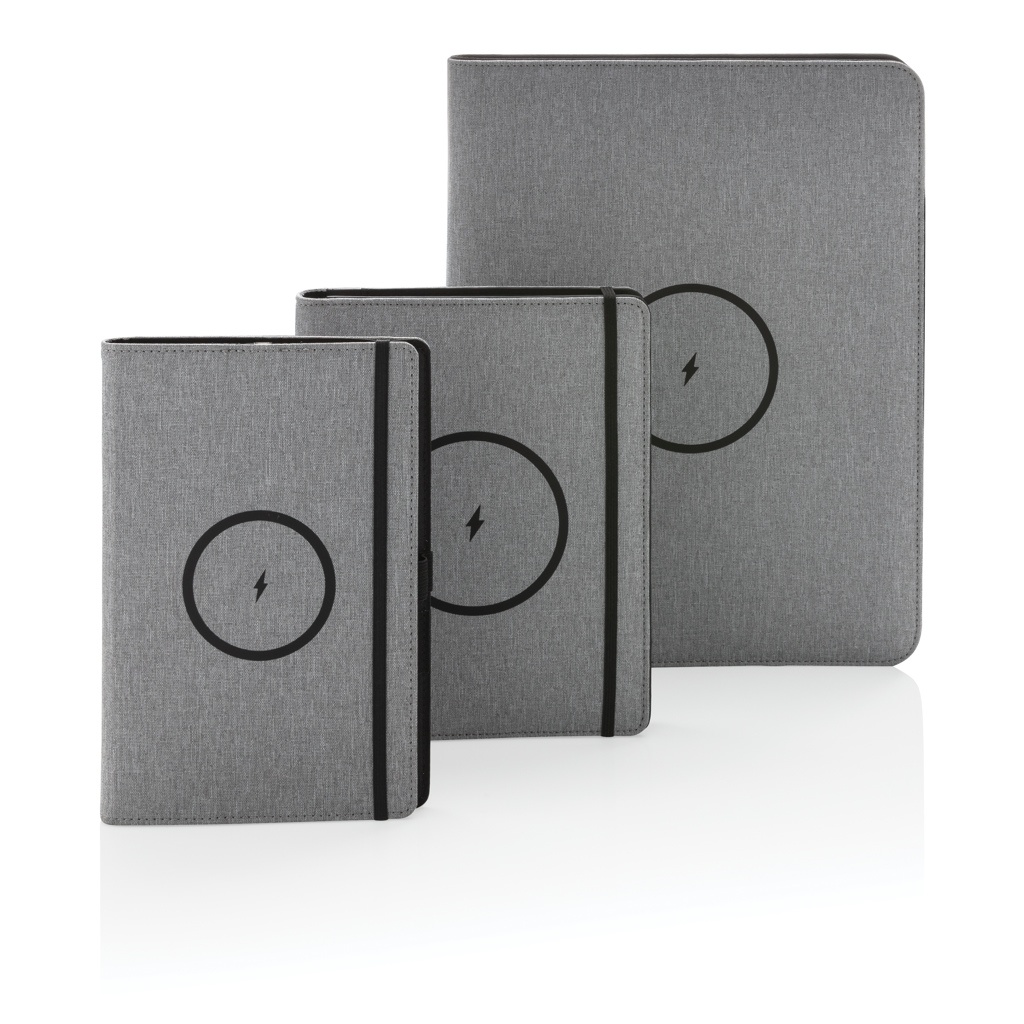 Air 5W Wireless Charging Notizbuch A5 mit 5000 mAh Powerbank, grau