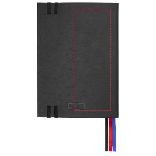 Das Alder A5-Notizbuch besteht aus recyceltem Kunststoff in Lederoptik und enthält 192 Seiten cremefarbenes 80-g/m²-Papier im Tagesplaner-Layout – ideal zum Führen eines Tagebuchs und zur täglichen Organisation. Es ist mit zwei elastischen Bändern, drei farbigen Lesebändchen (schwarz, rot und blau), 200 kleinen Haftnotizen in fünf Farben (je 40 Stück) und einer praktischen Papierstecktasche für lose Zettel ausgestattet. Mit einem geprägten JournalBooks-Logo auf der Rückseite versehen und in einer weißen Papierhülle verpackt.