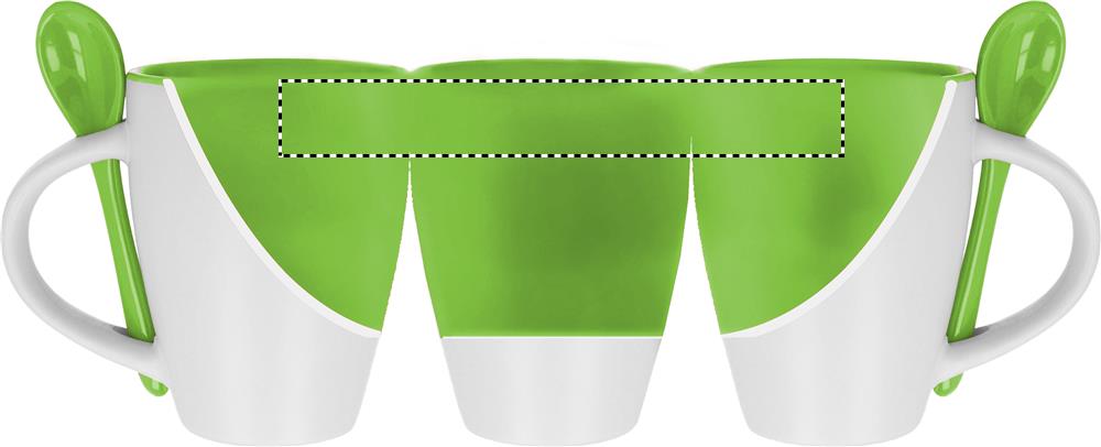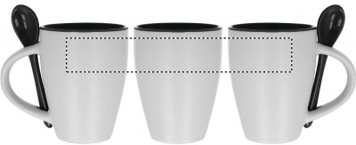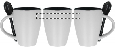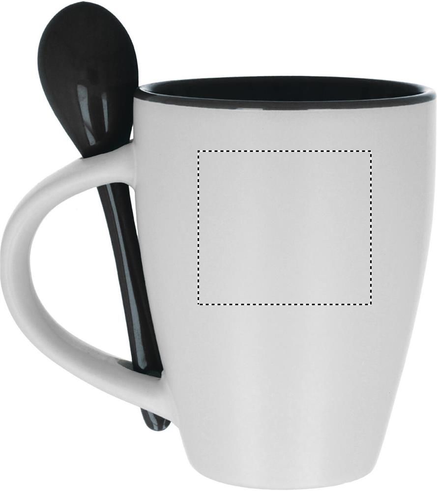Zweifarbiger Kaffeebecher aus Keramik mit Löffel. Füllmenge: 250 ml. Nur Keramik-Transferdruck ist spülmaschinengeeignet. Verpackt in einem Karton.