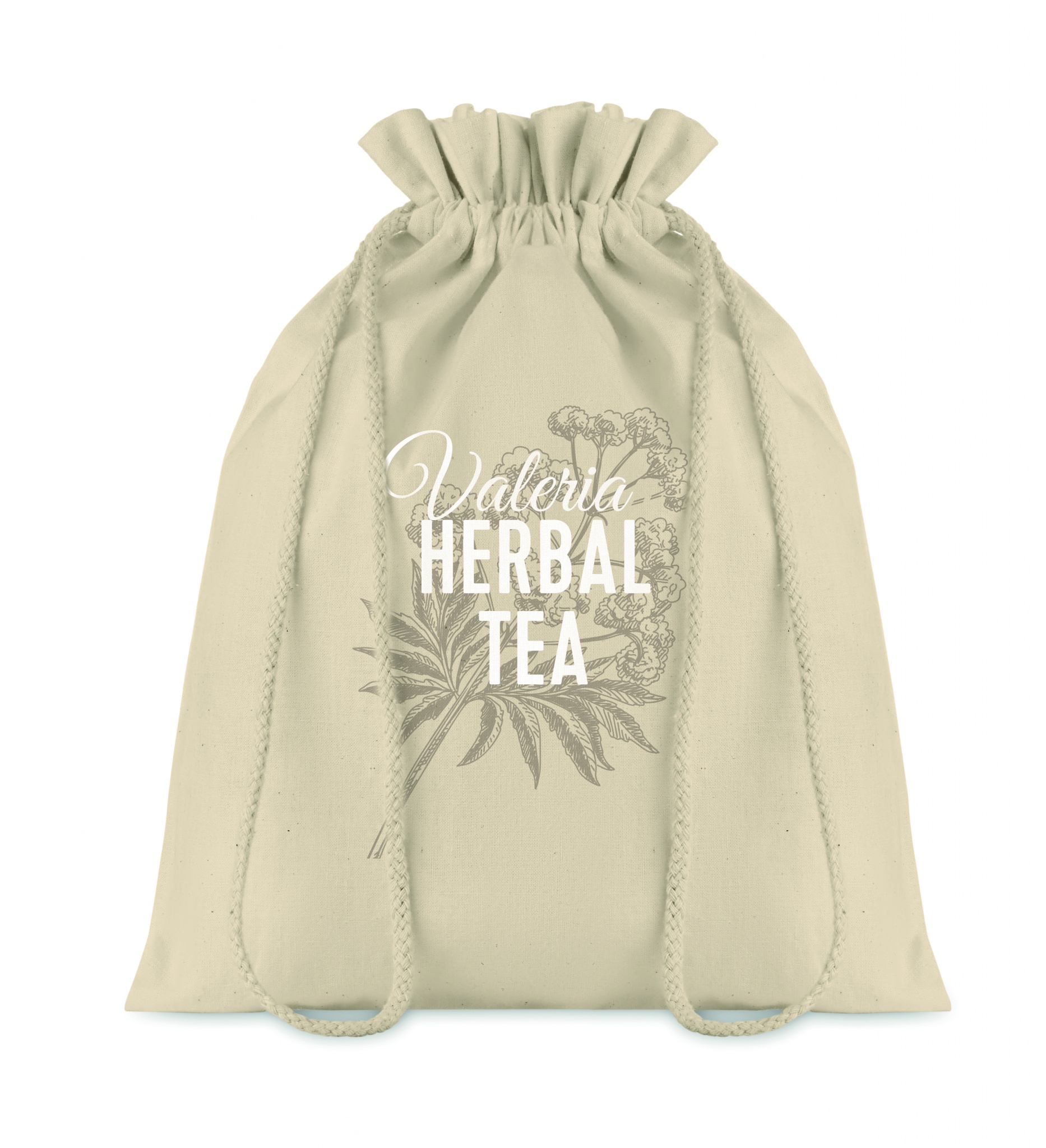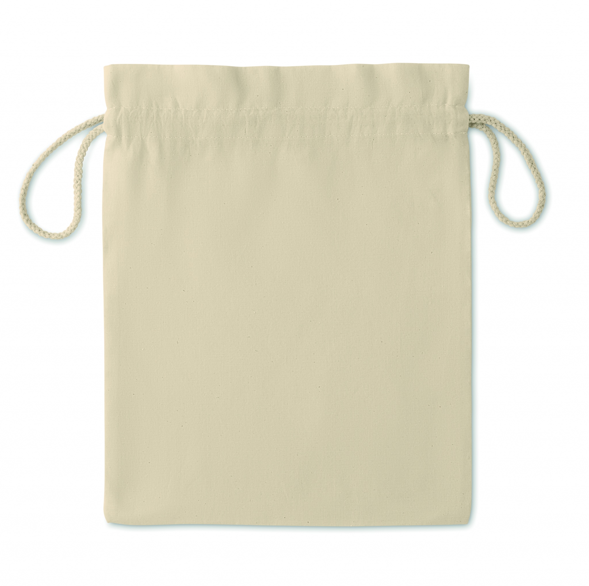 Baumwolle-Beutel mit Kordelzug in mittlerer Größe. Maße ca. 25x32cm. 105 g/m².