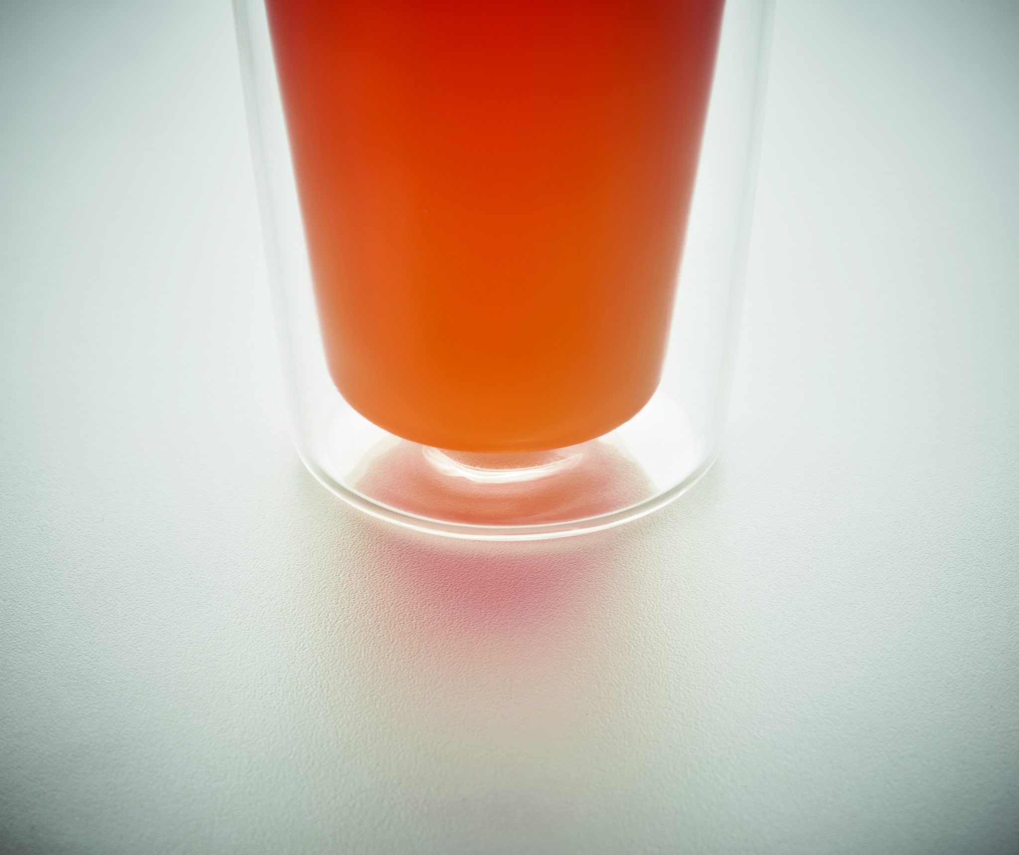 Doppelwandiges Borosilikat Trinkglas mit Silikon Deckel. Füllmenge: 350 ml.