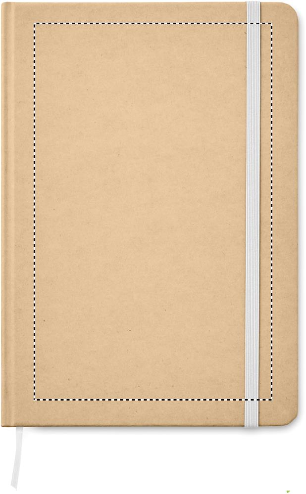 DIN A5 Notizbuch mit Hard Cover aus recyceltem Karton. 80 Blatt (160 Seiten) liniertes Papier. Elastisches Verschlussband, Lesebändchen.