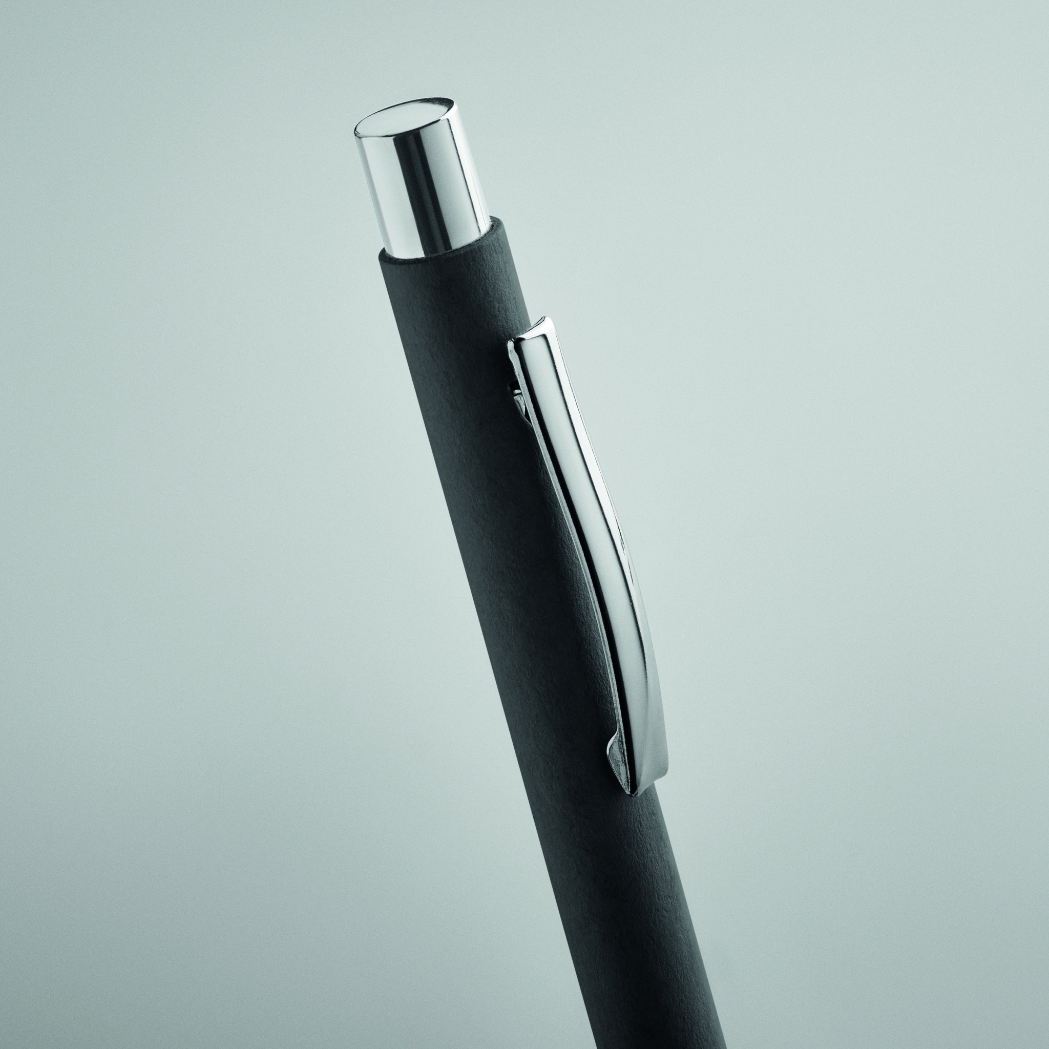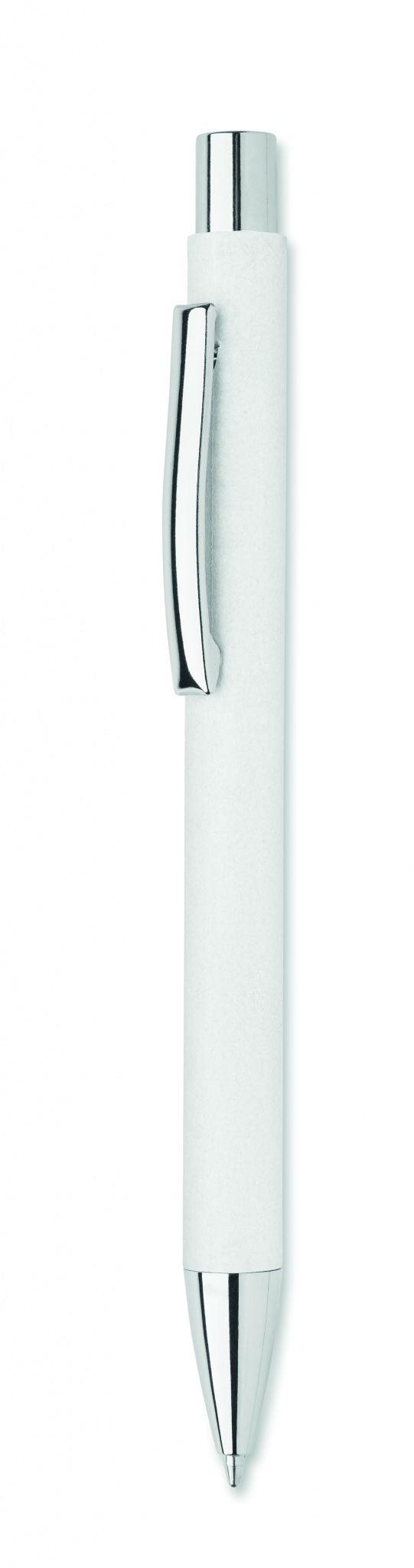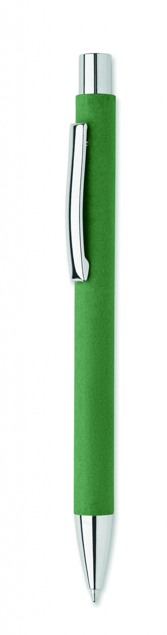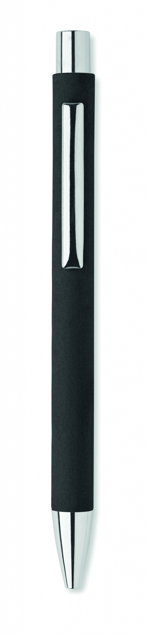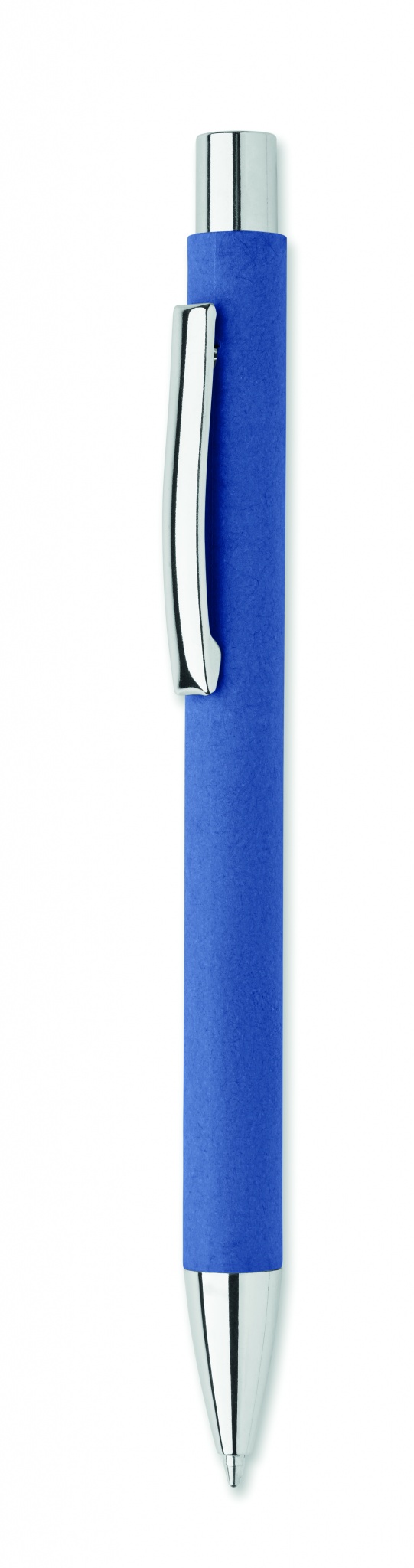 Druckkugelschreiber aus recyceltem Papier, Metallclip und Details aus Kunststoff. Blaue Tinte.
