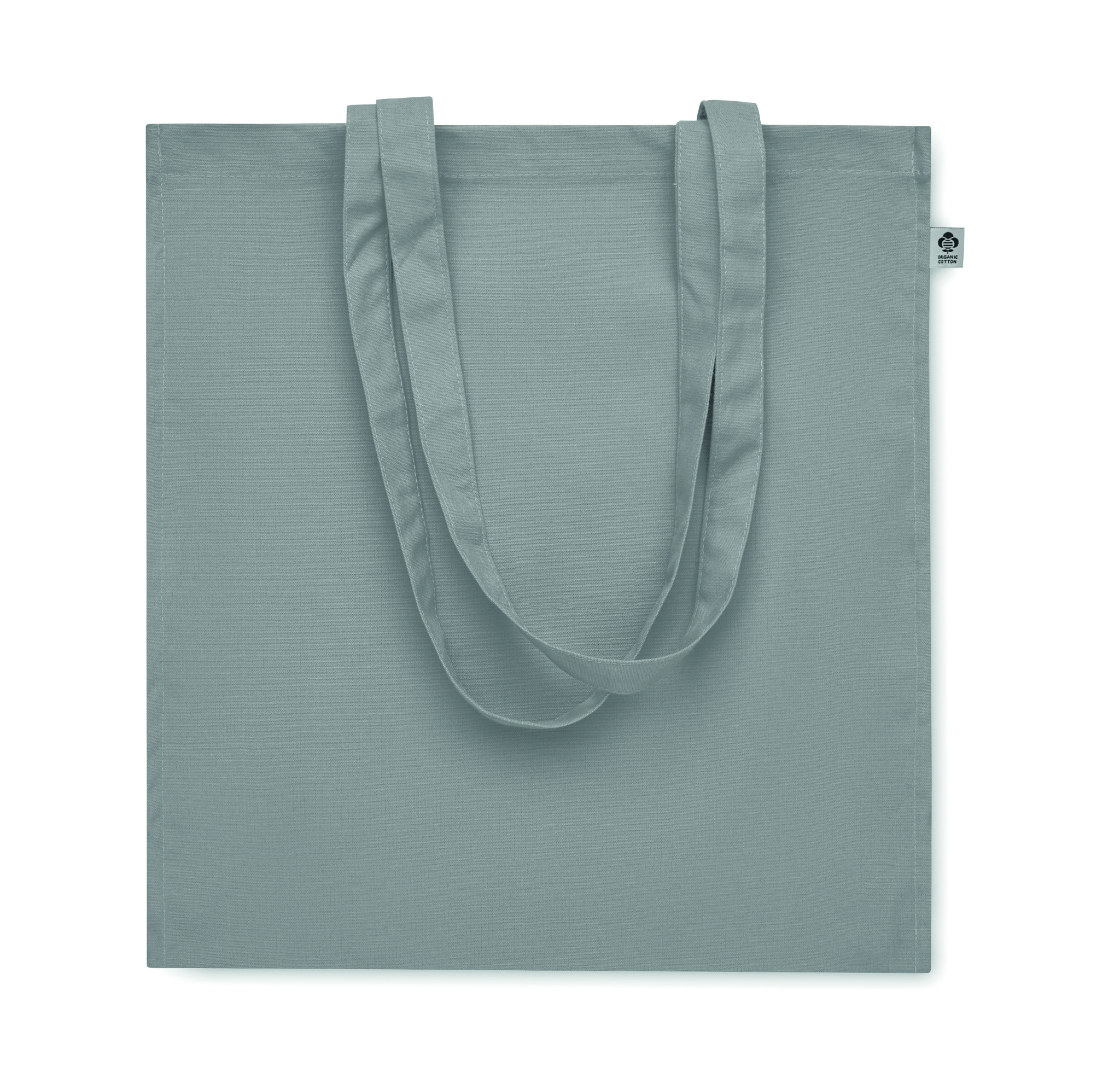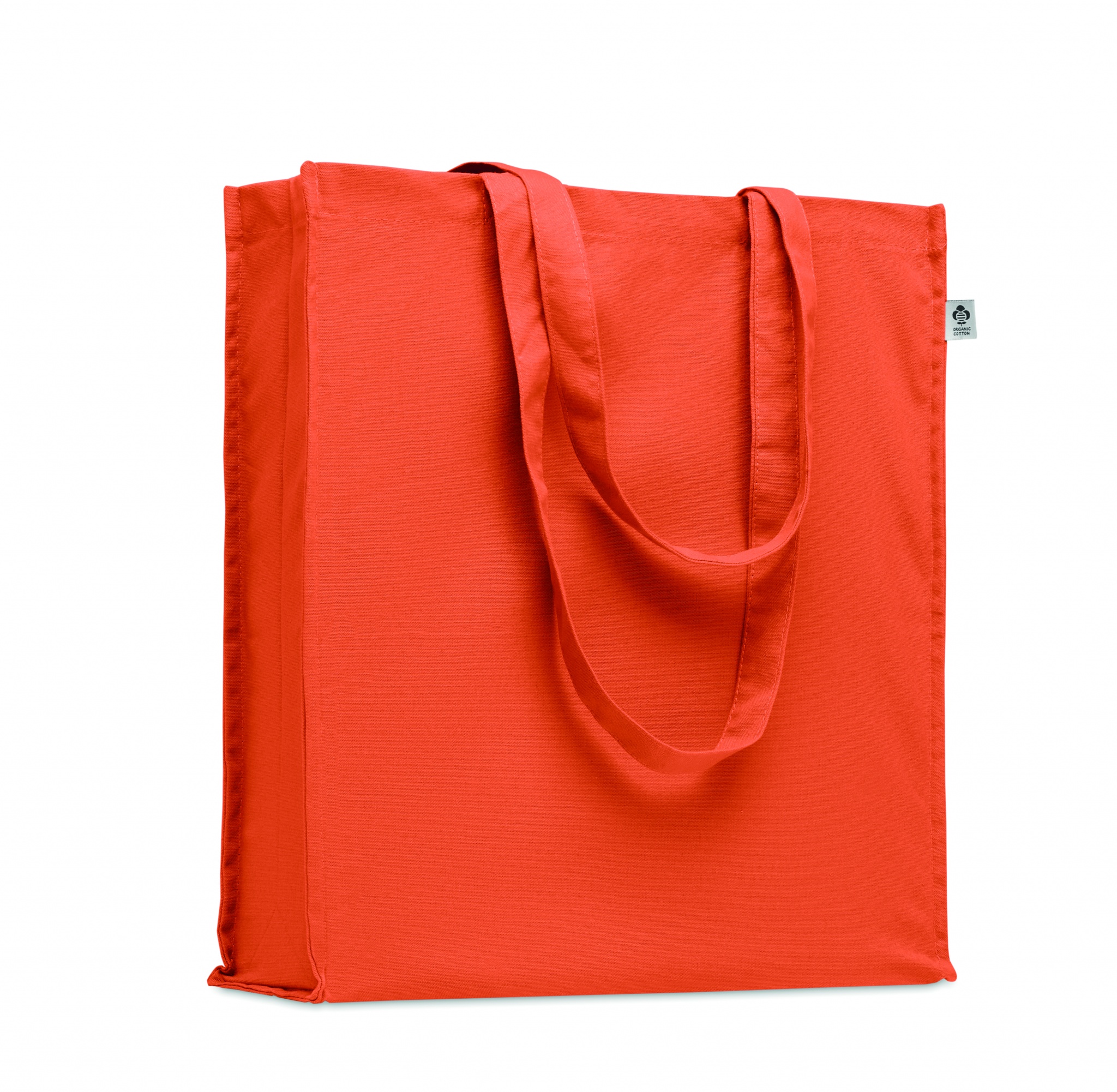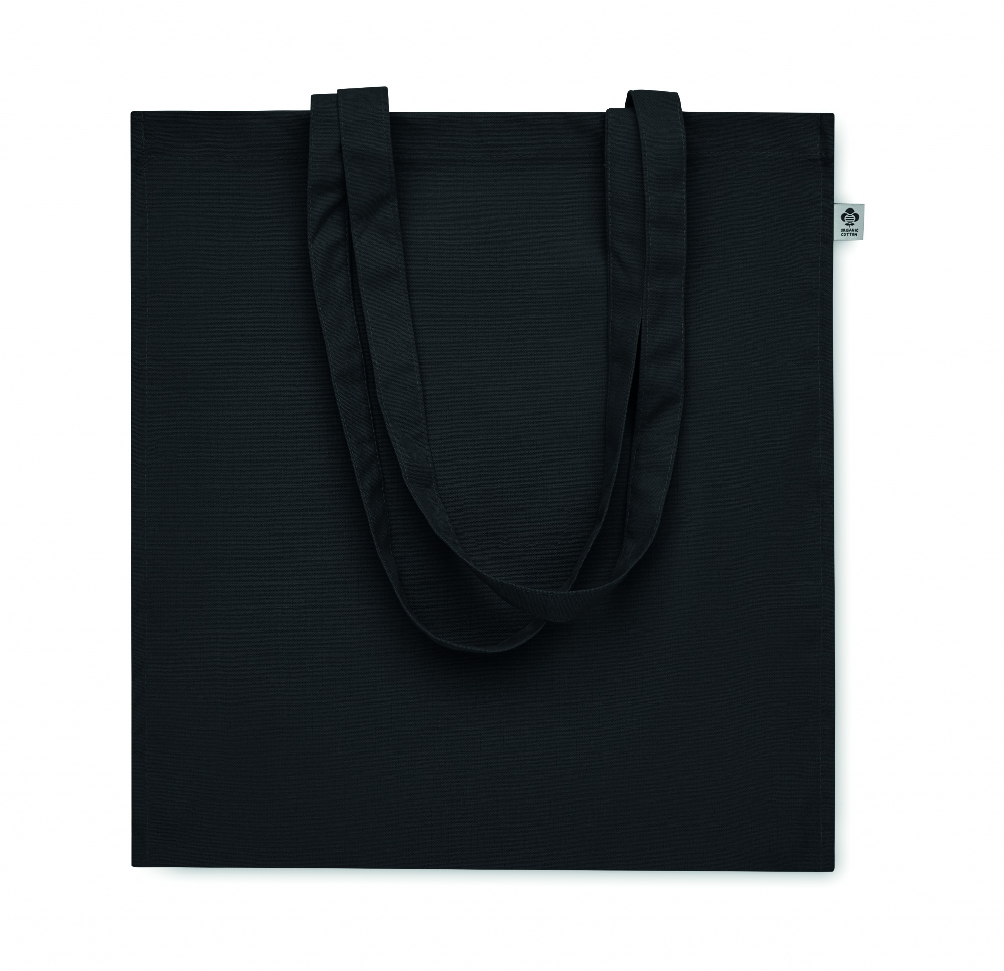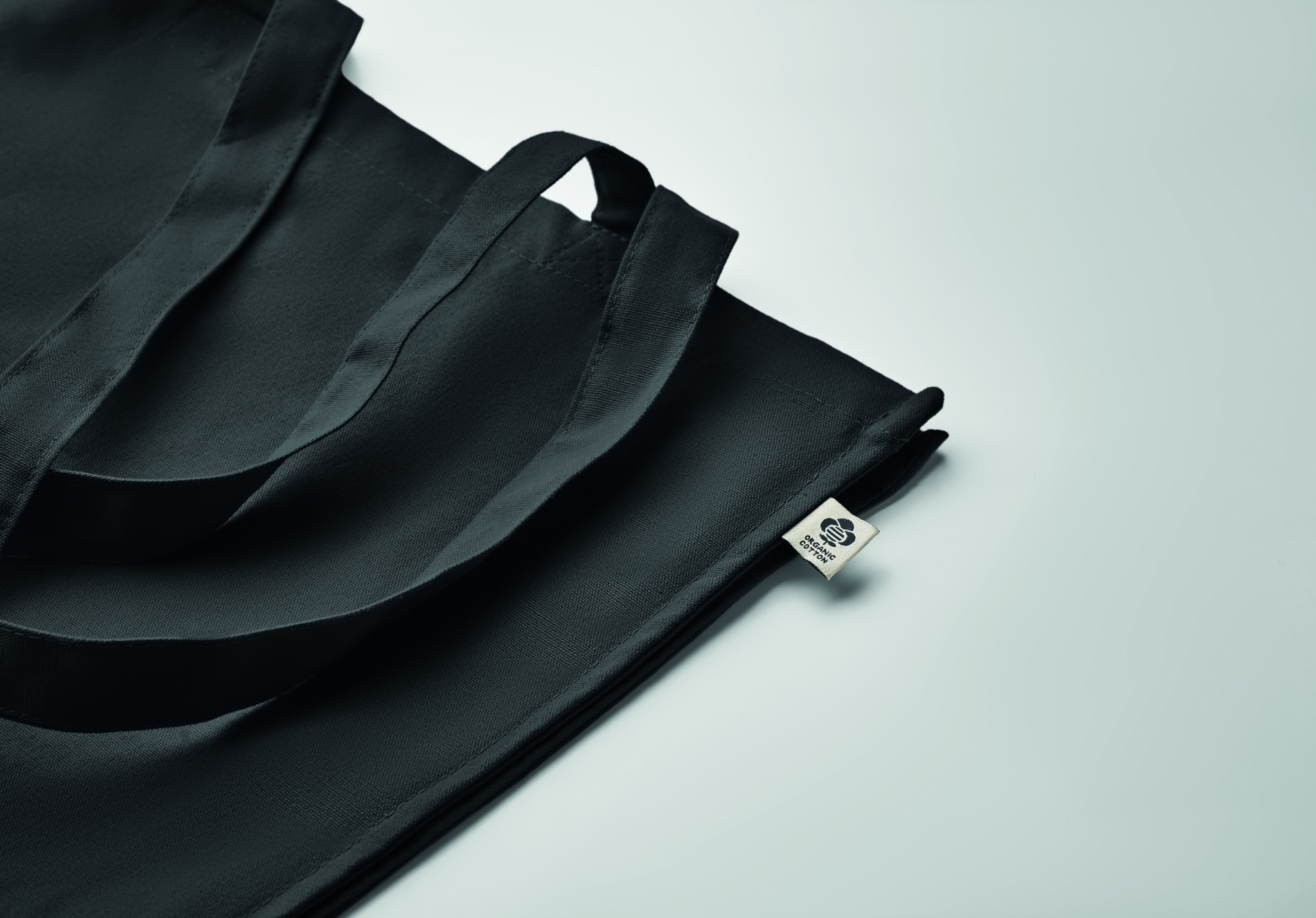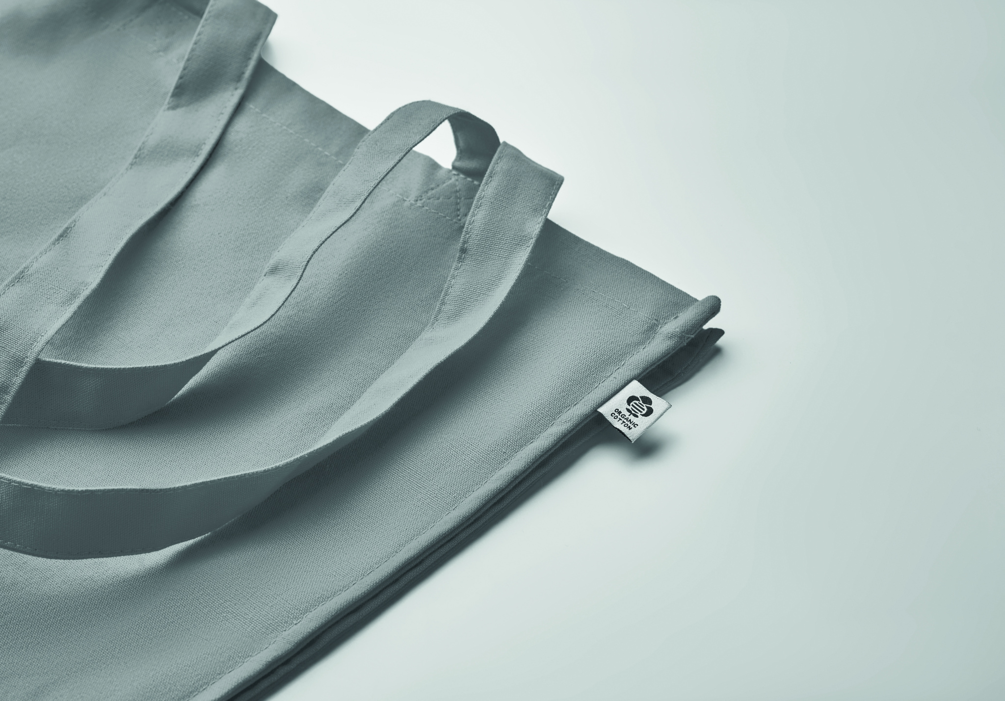 Einkaufstasche aus Organic Cotton mit langen Tragegriffen und Bodenfalz. 220 g/m².