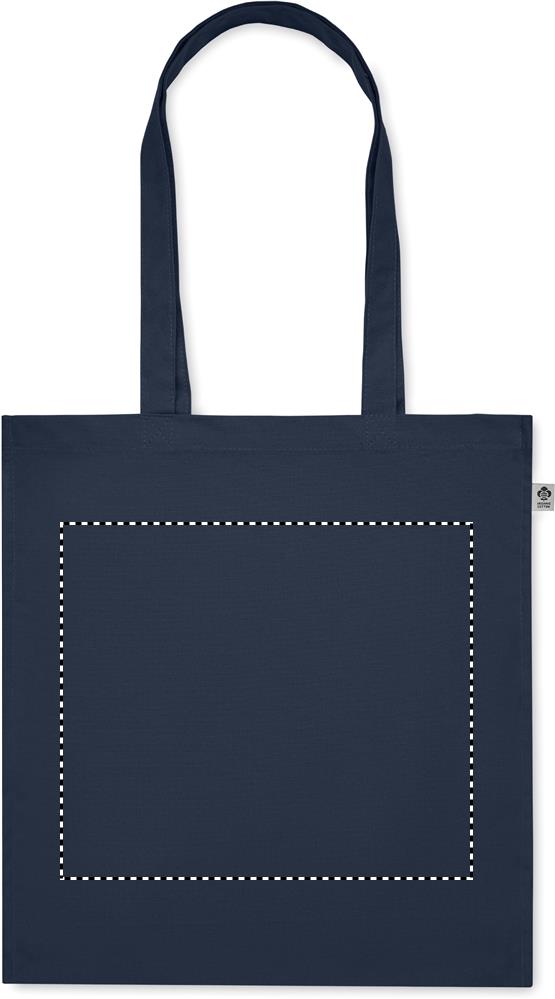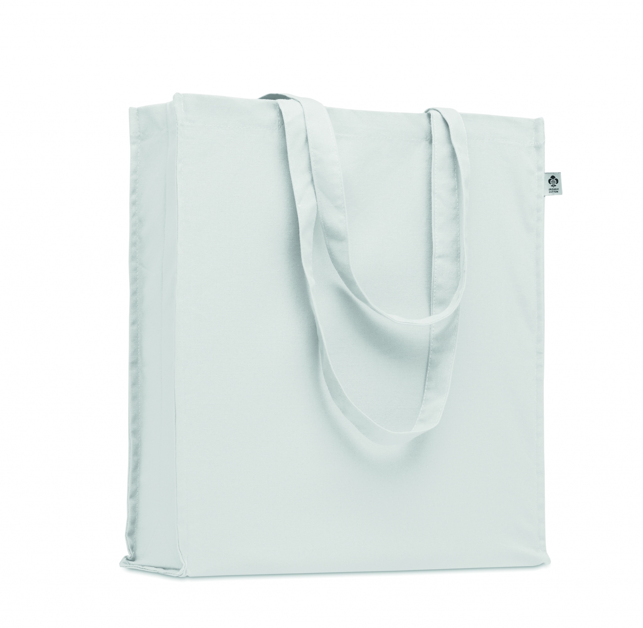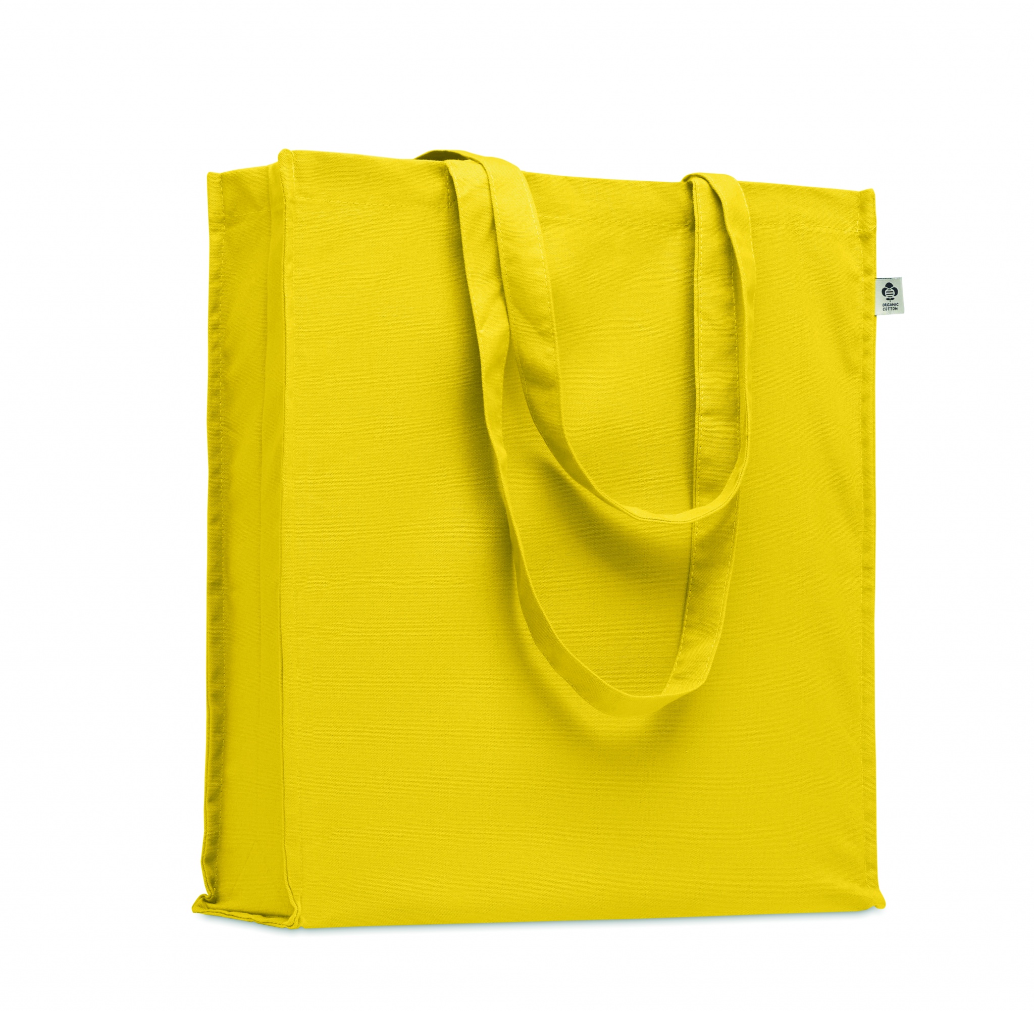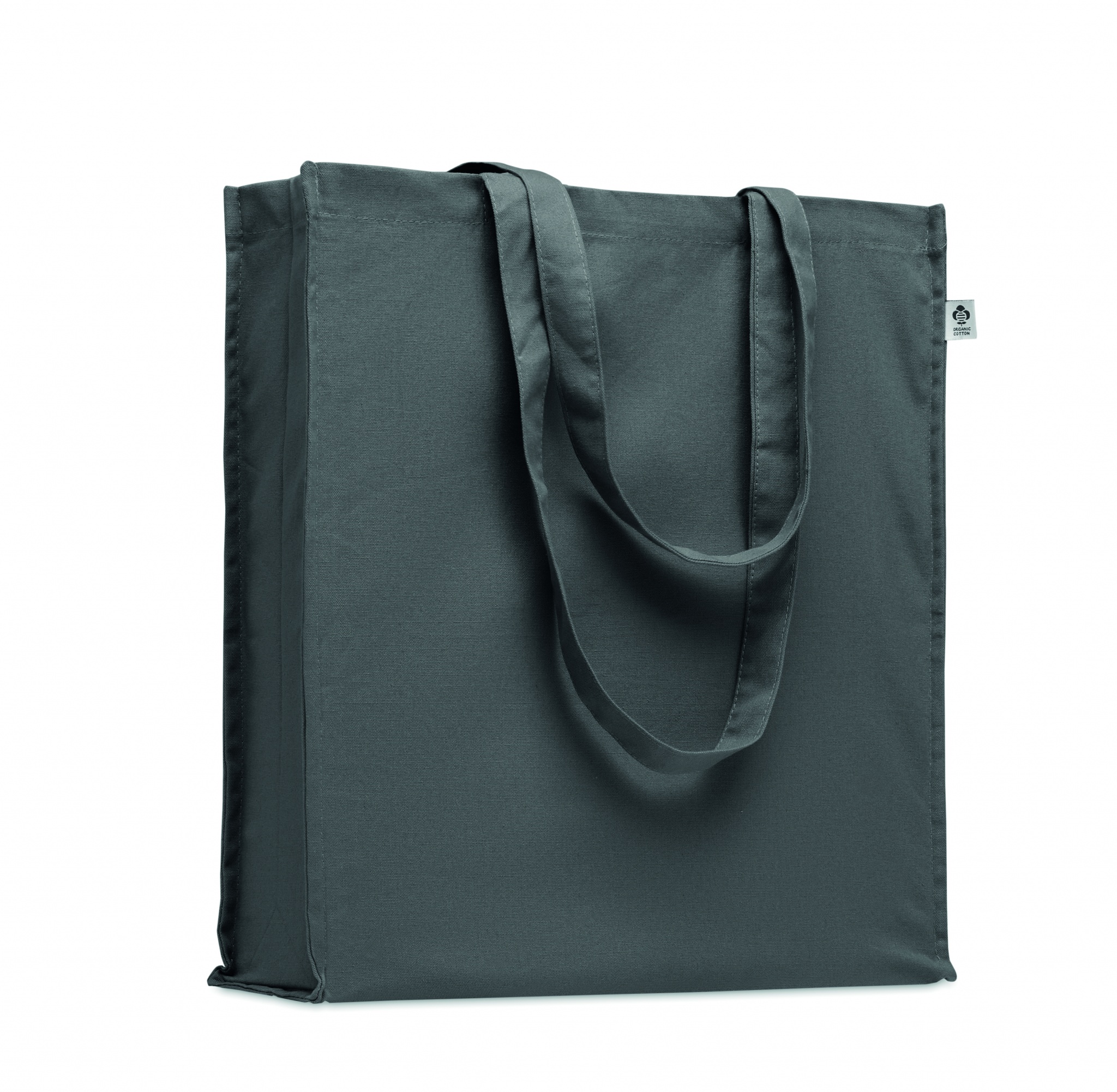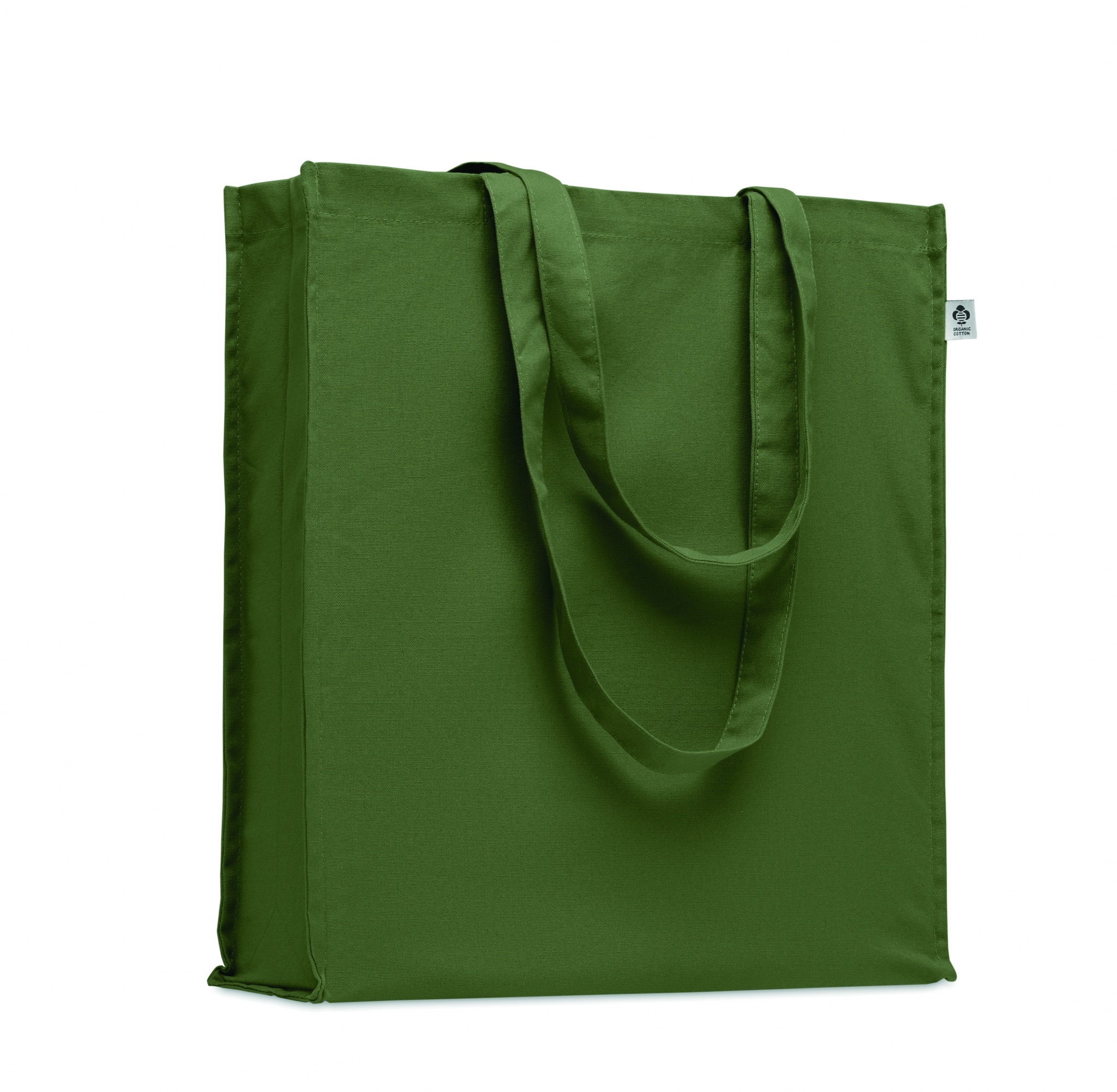 Einkaufstasche aus Organic Cotton mit langen Tragegriffen und Bodenfalz. 220 g/m².