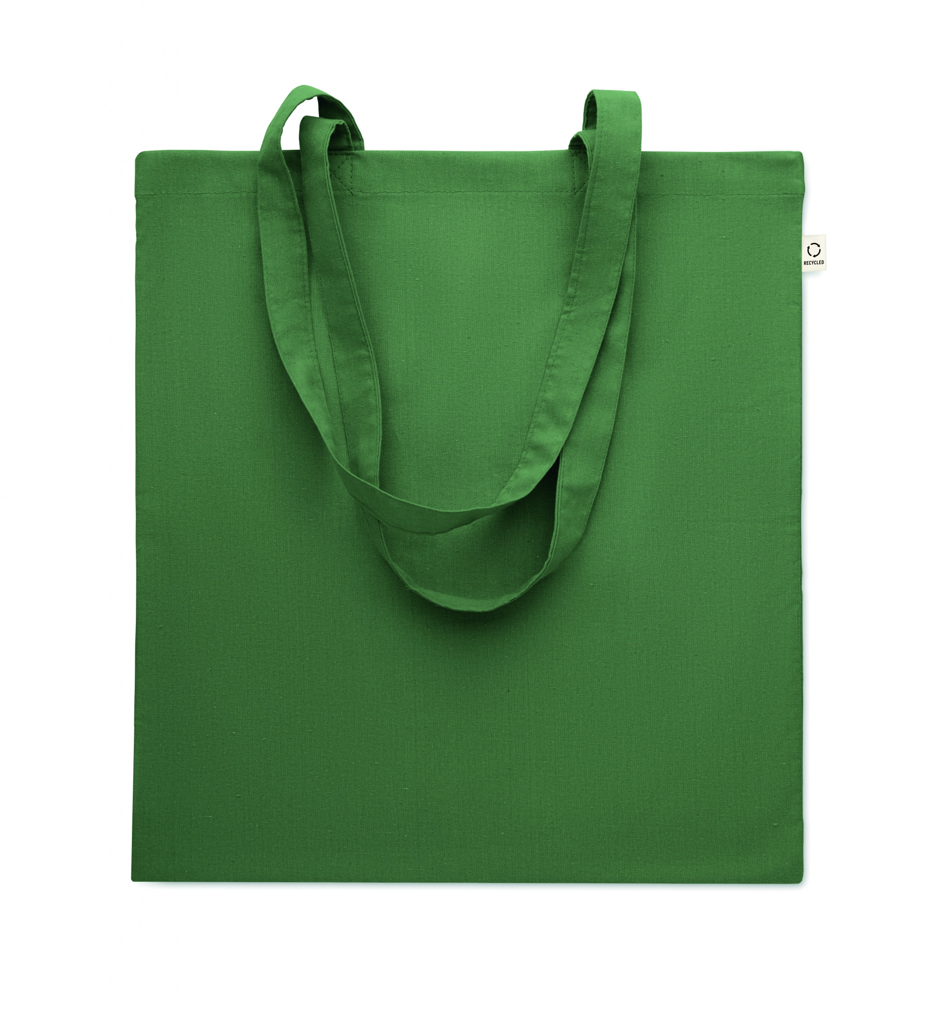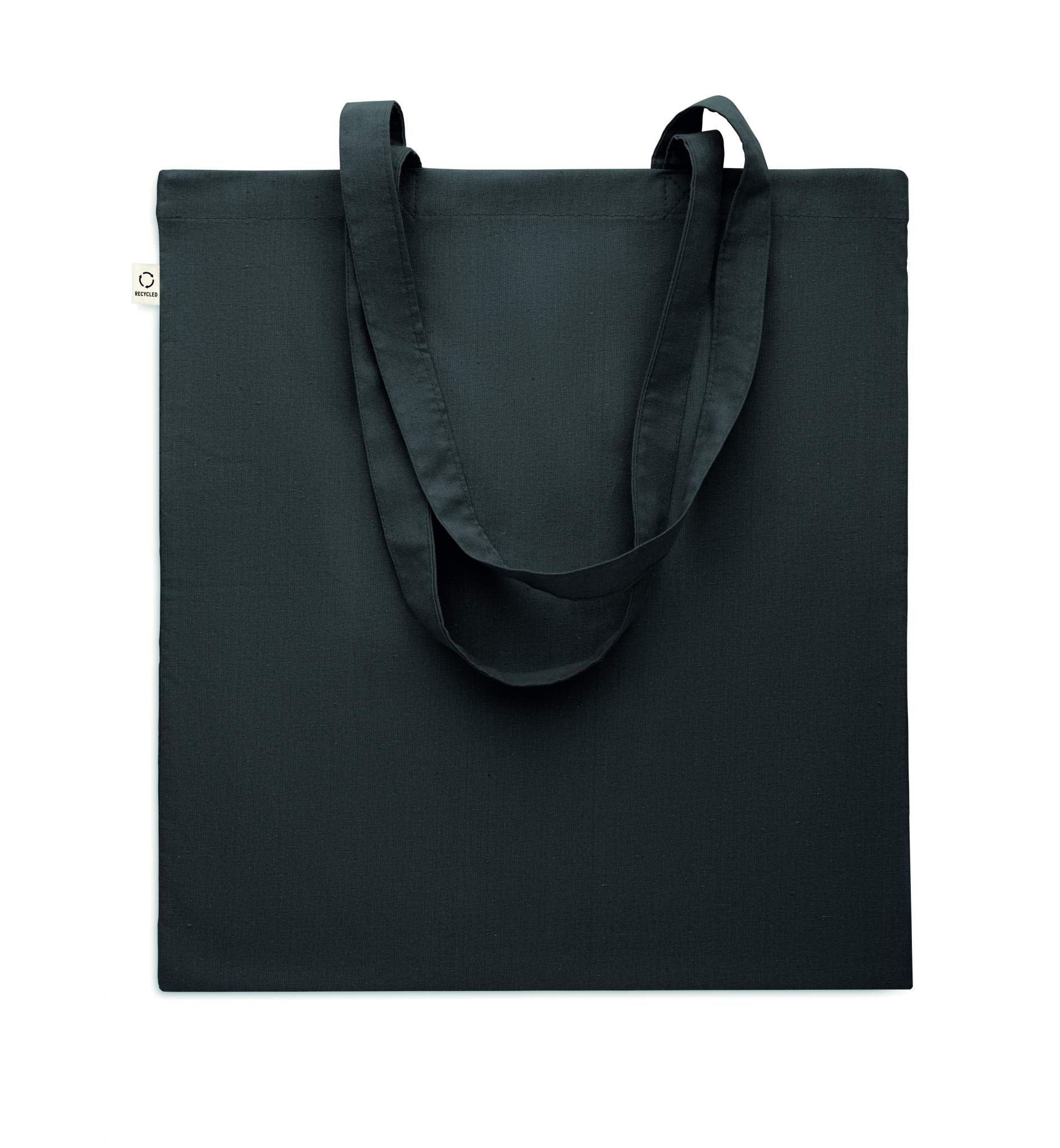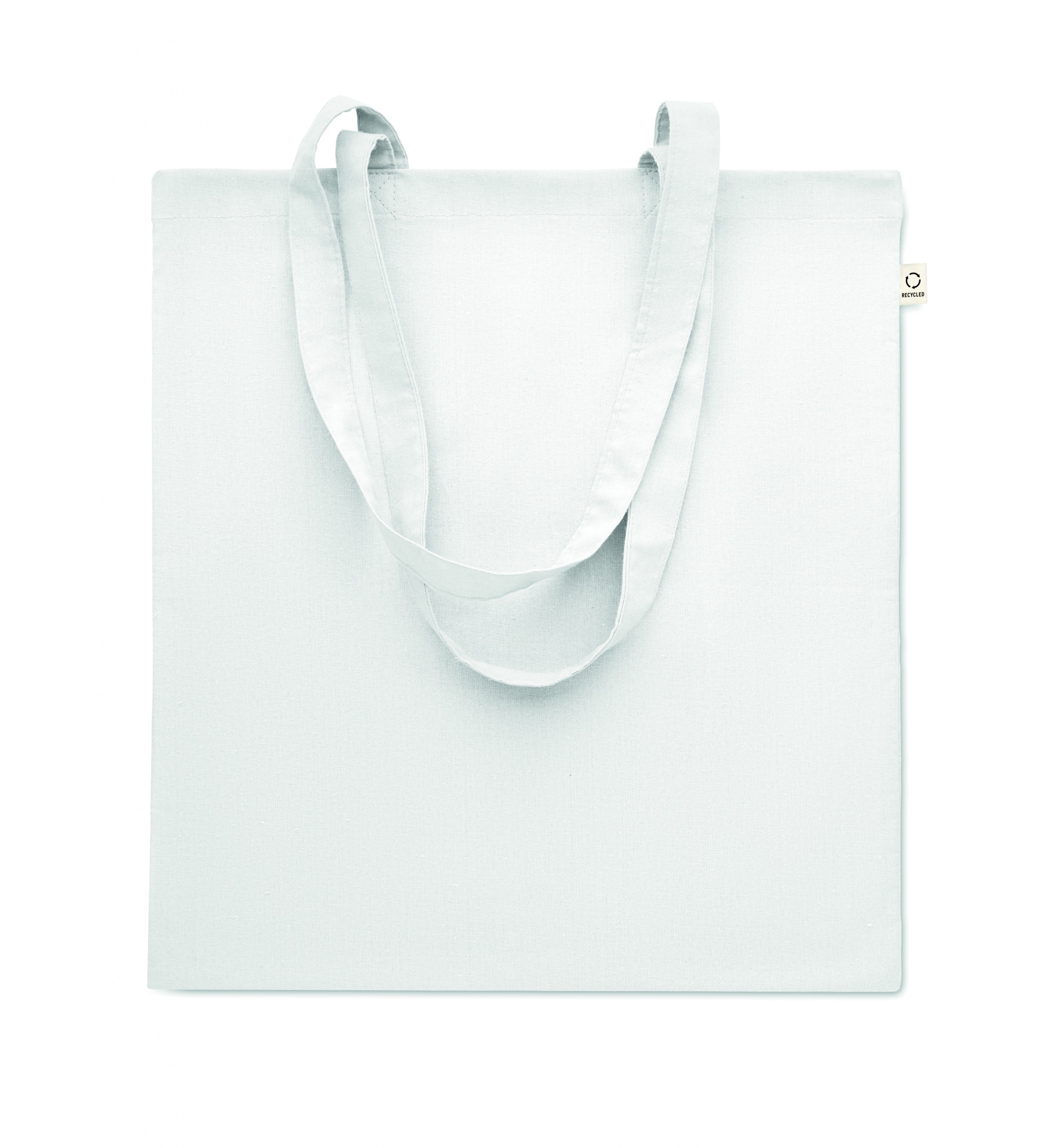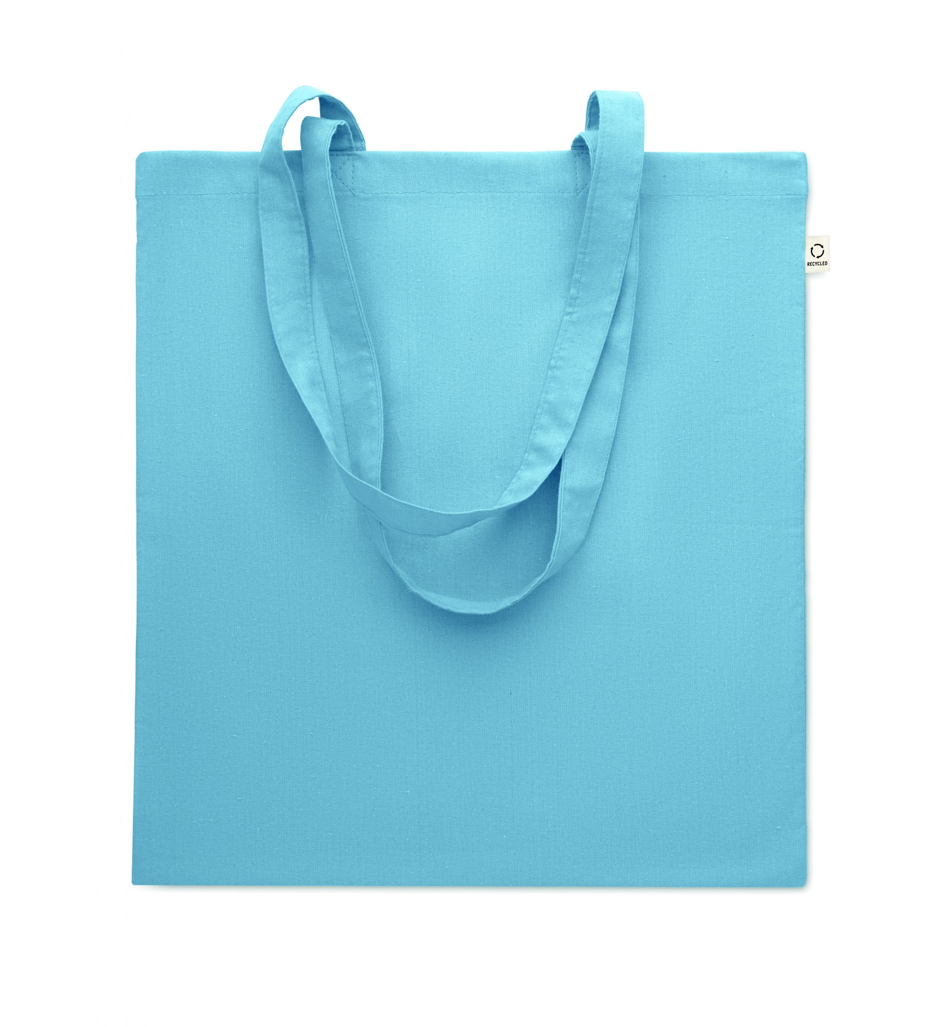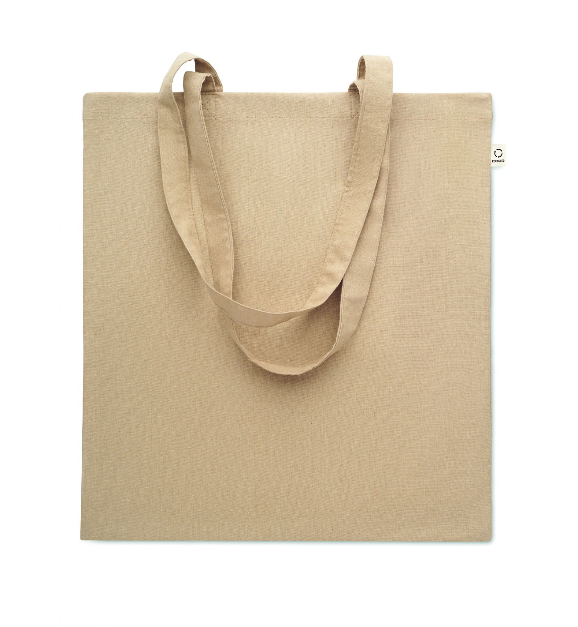 Einkaufstasche aus recycelter Post-Consumer-Baumwolle (70 % recycelte Baumwolle und 30 % RPET) mit langen Tragegriffen. 140 g/m².