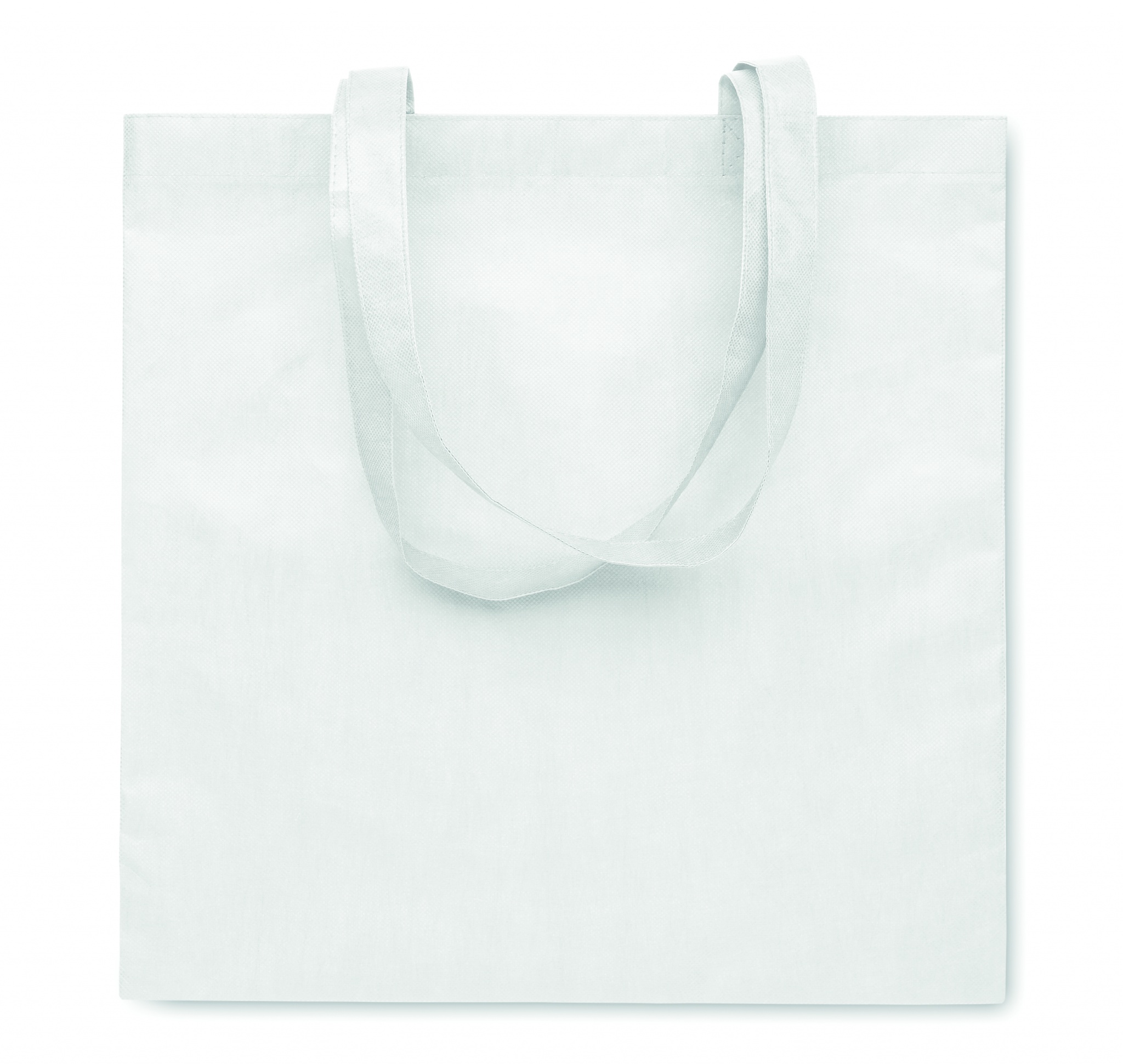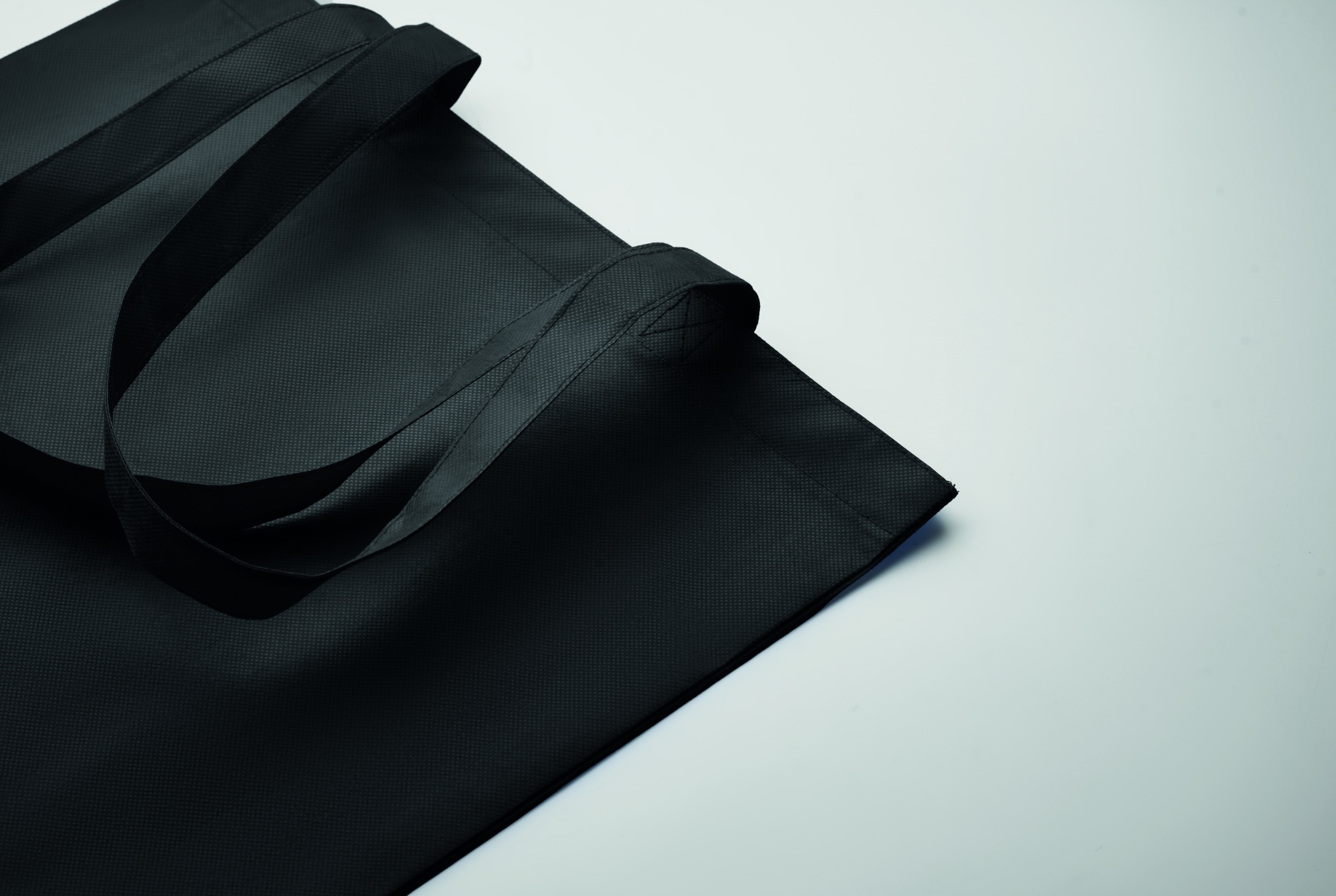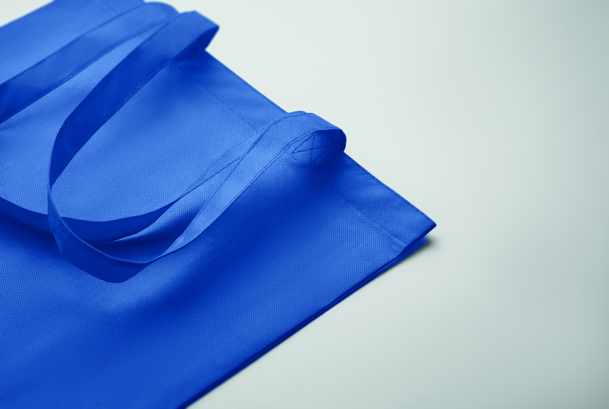 Einkaufs- oder Strandtasche aus RPET-Non Woven mit Seitenfalz und langen Tragegriffen. 80 g/m².