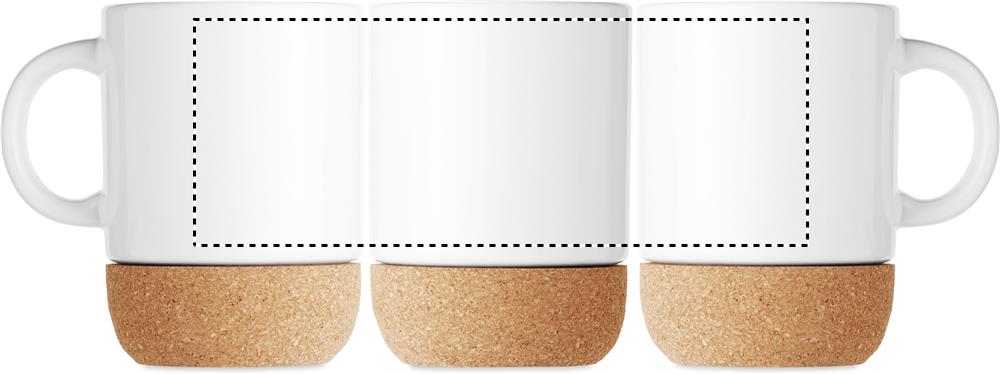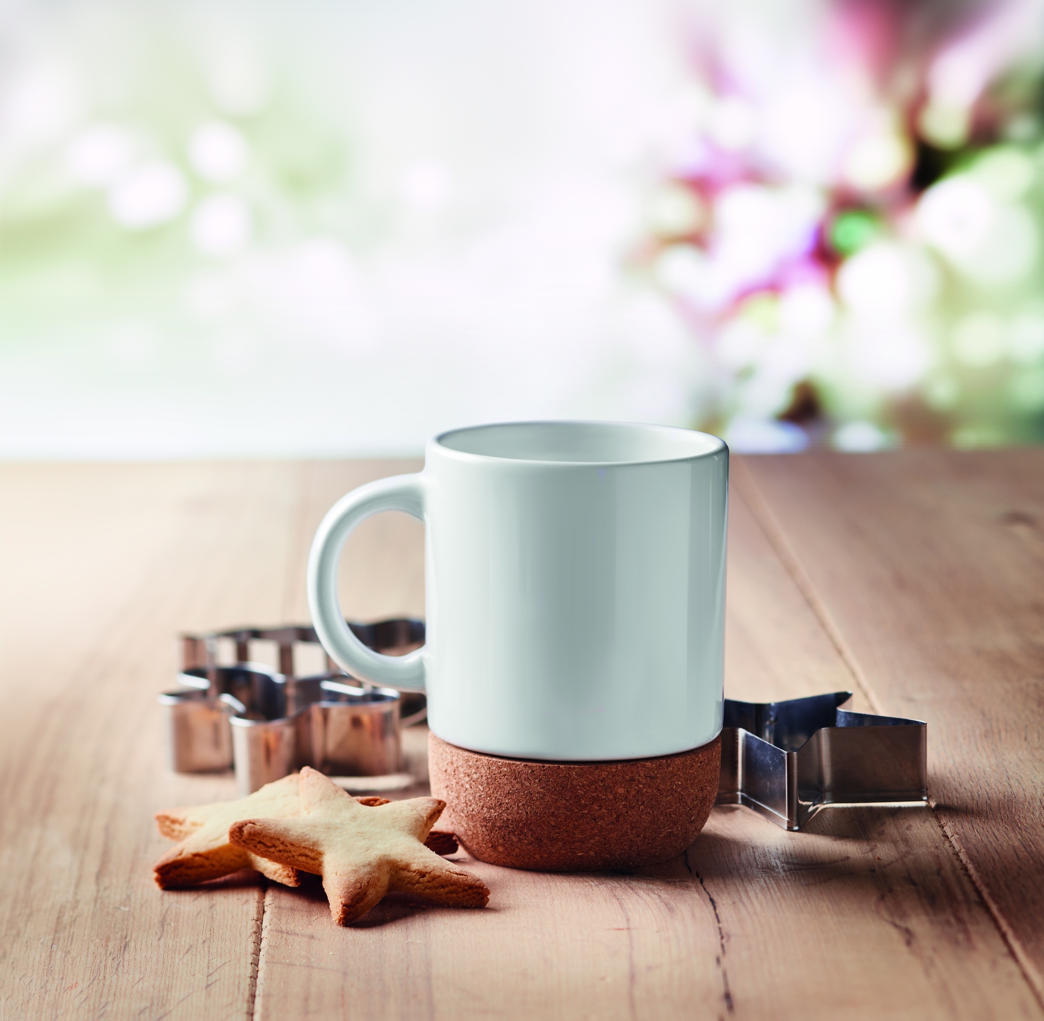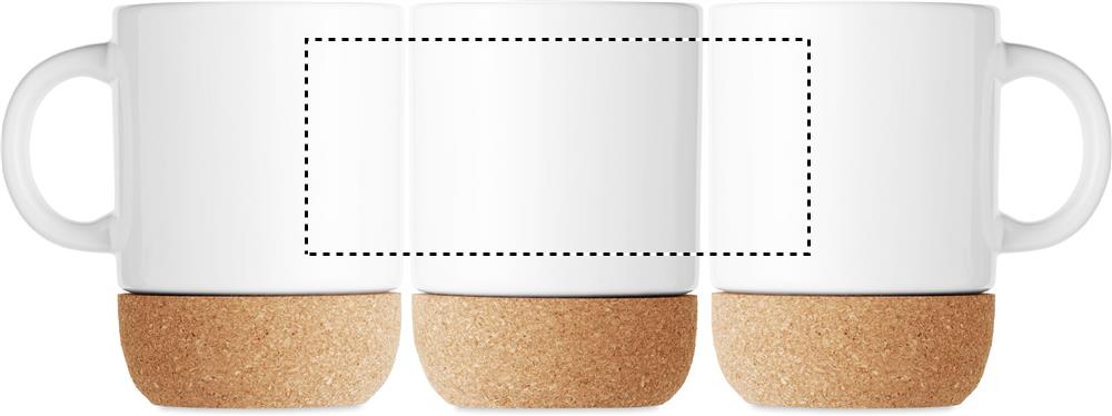 Becher aus Keramik. Spezielle Beschichtung für Sublimationsdruck. Der Boden ist mit Kork abgesetzt. Weiße Kartonage. Füllmenge: 300 ml. Kork ist ein 100% natürliches Material. Aufgrund seiner strukturellen Beschaffenheit und Oberflächenporosität kann das endgültige Druckergebnis pro Artikel Abweichungen aufweisen.