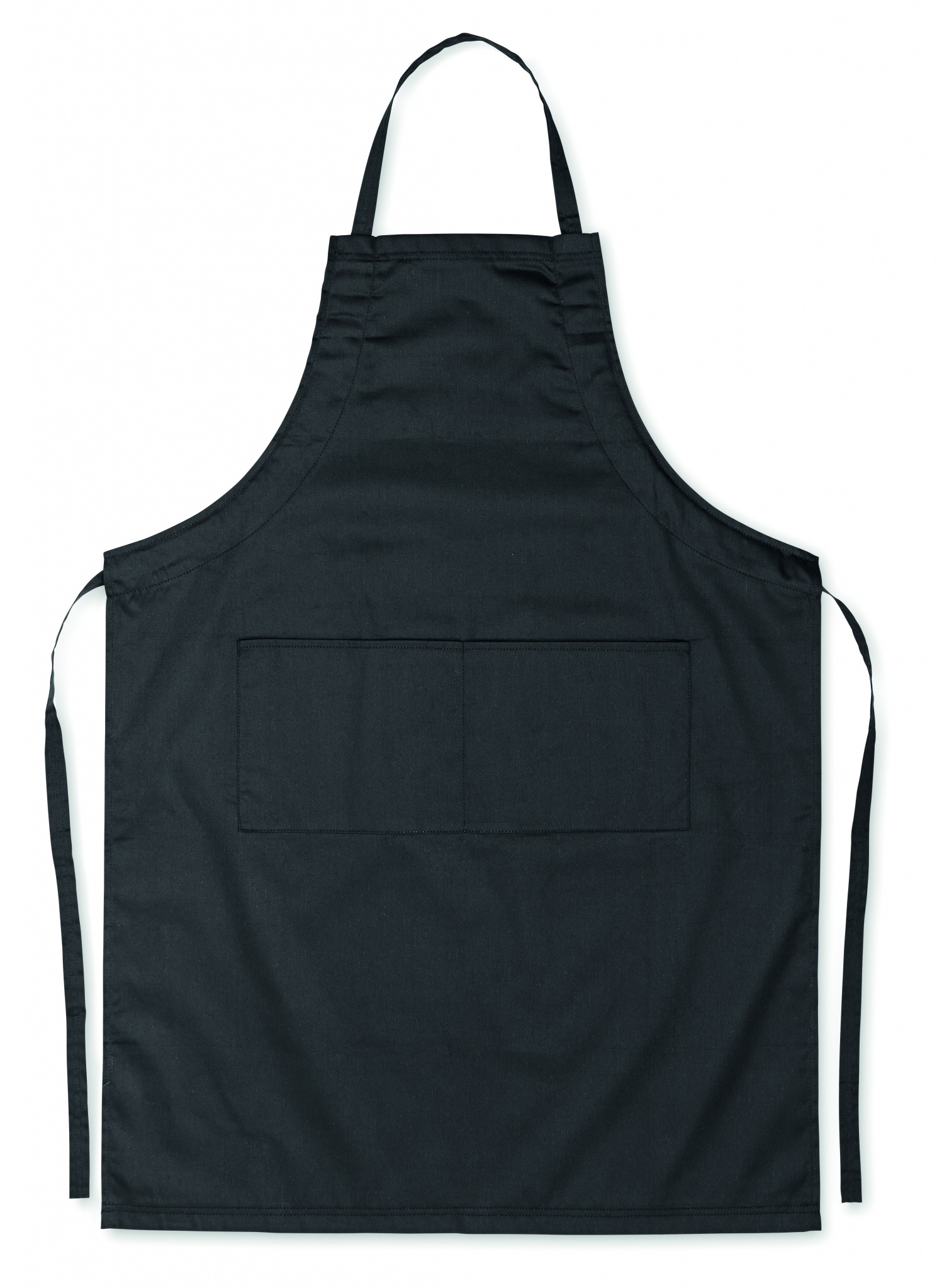 Küchenschürze mit verstellbarem Nackenband und 2 Fronttaschen. 10% Baumwolle / 90% Polyester, 190 g/m².