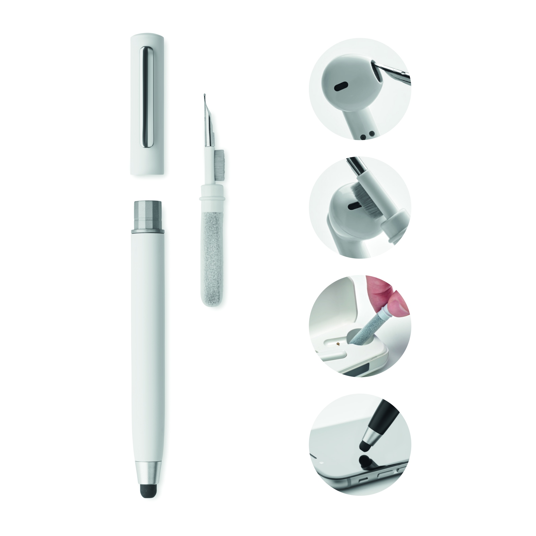 Drehkugelschreiber und Stylus. ABS. Inkl. Reinigungs-Set für TWS-Ohrhörer: Metallspitze, Schwamm und Bürste. Blaue Tinte.