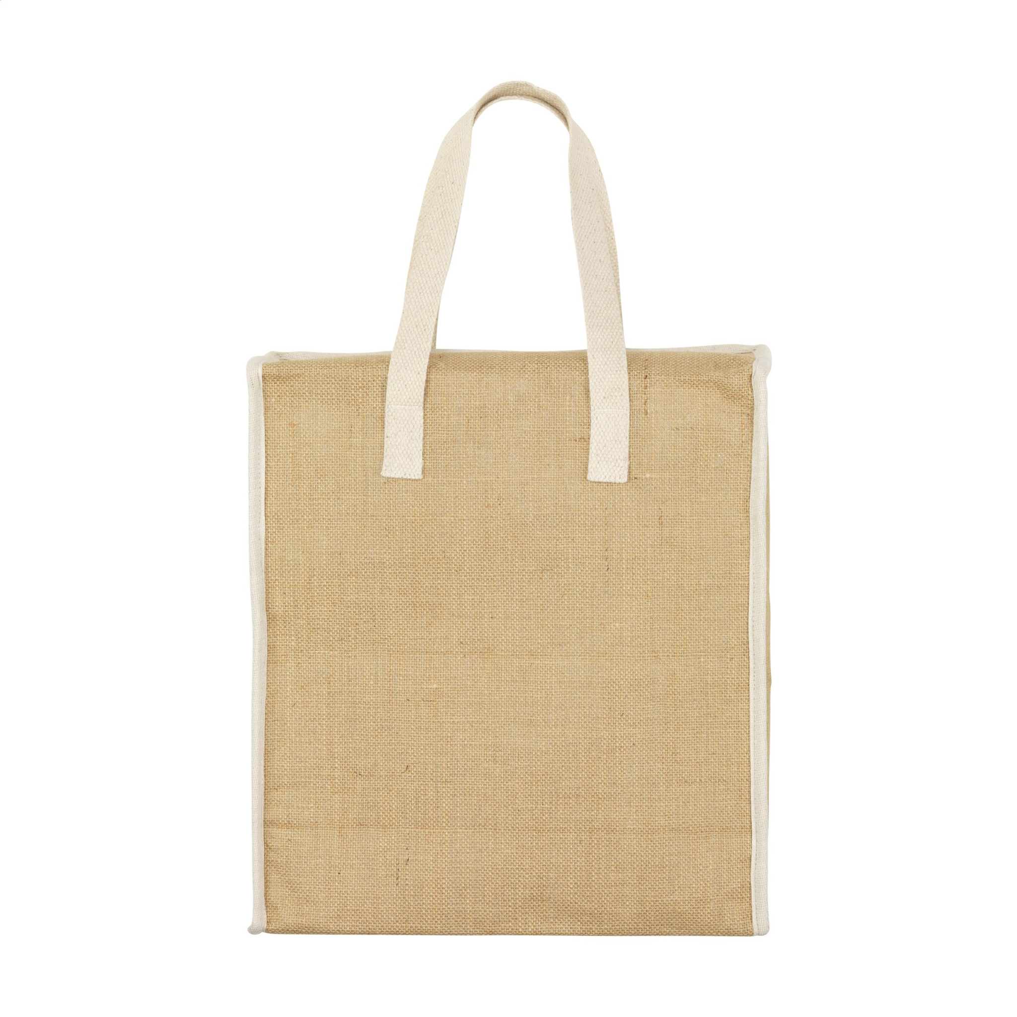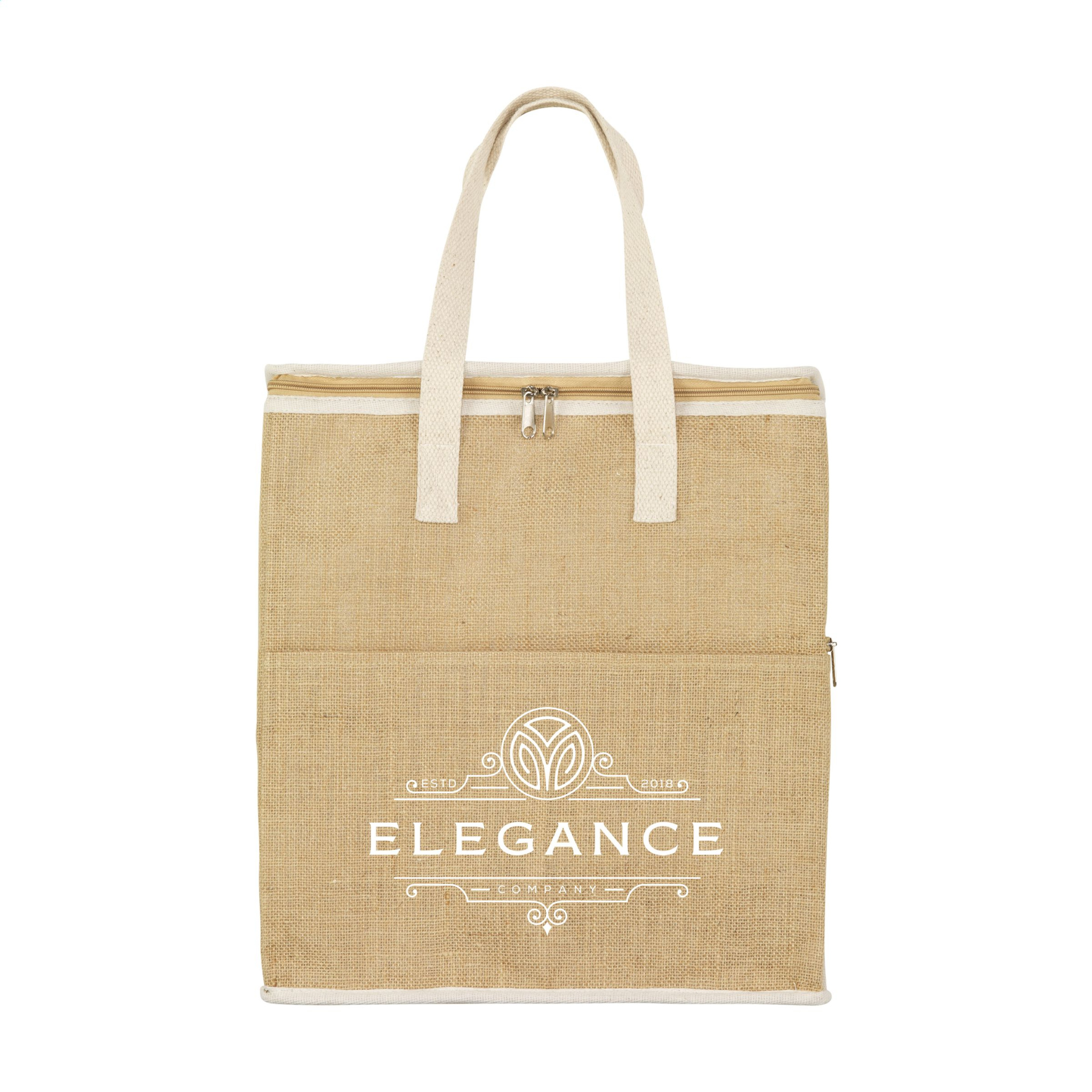 WoW! Diese Kühltasche besteht aus einer Kombination aus robustem Jute- und Baumwollmaterial mit isoliertem Innenteil. Halten Sie Ihre Speisen und Getränke während eines Tagesausflugs in dieser sehr geräumigen Kühltasche kühl. Diese Tasche hat einen Reißverschluss und eine Vordertasche, die zusätzlichen Stauraum bietet. Diese zusätzlichen Taschen sind praktisch für die Aufbewahrung von Dingen, die nicht gekühlt werden müssen, wie z. B. Ihr Telefon oder Ihre Brieftasche. Wird mit gewebten Baumwollgriffen geliefert. Fassungsvermögen ca. 24 Liter.