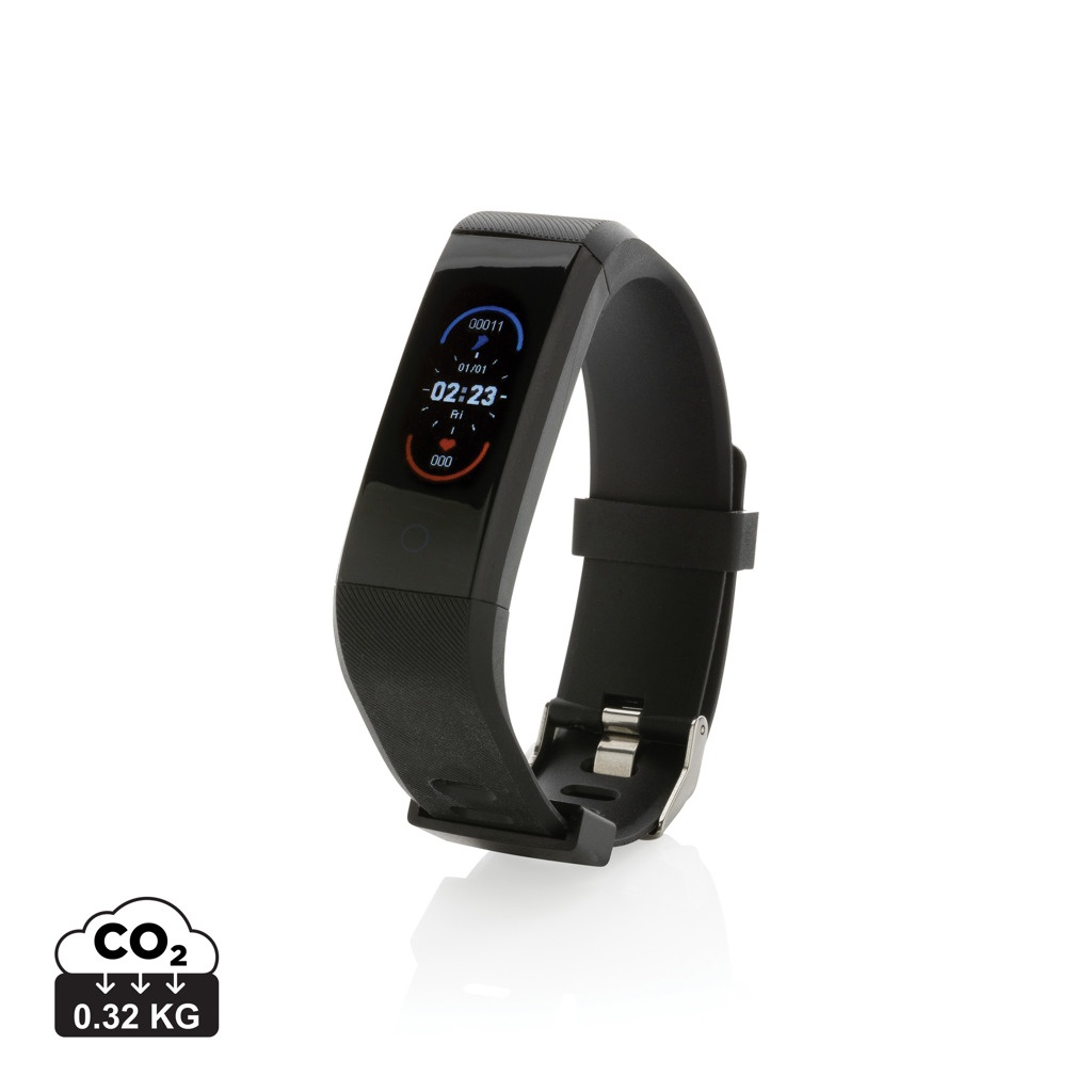 Tun Sie das Beste für Ihren Körper mit diesem wasserdichten (IPX5) Aktivity-Tracker mit bequemem Armband aus recyceltem TPU. Mit benutzerfreundlichem 0,96"-OLED-Touch-Screen. Hergestellt aus RCS (Recycled Claim Standard)-zertifiziert recyceltem TPU-Armband und ABS-Gehäuse. Gesamter Recyclinganteil: 35% basierend auf dem Gesamtgewicht des Artikels. Die RCS-Zertifizierung gewährleistet eine vollständig zertifizierte Lieferkette der recycelten Materialien. Inklusive kostenloser App in 6 Sprachen, um Einblick in Ihre Erfolge zu erhalten (für iOS 8.1 und Android 4.4 oder höher). Mit BT5.0. Enthaltene Funktionen: Schlaf-Tracking, Schrittzähler, Distanz, Kalorienzähler, Pulsmesser, Blutdruck, Blutsauerstoff, Multi-Sport-Modus (11) und Kamerasteuerung. Bis zu 15 Tage Stand-By und bis zu 7 Tage Working-Time. Verpackt in FSC®-Mix-Kraftverpackung. Artikel und Zubehör 100% PVC-frei.