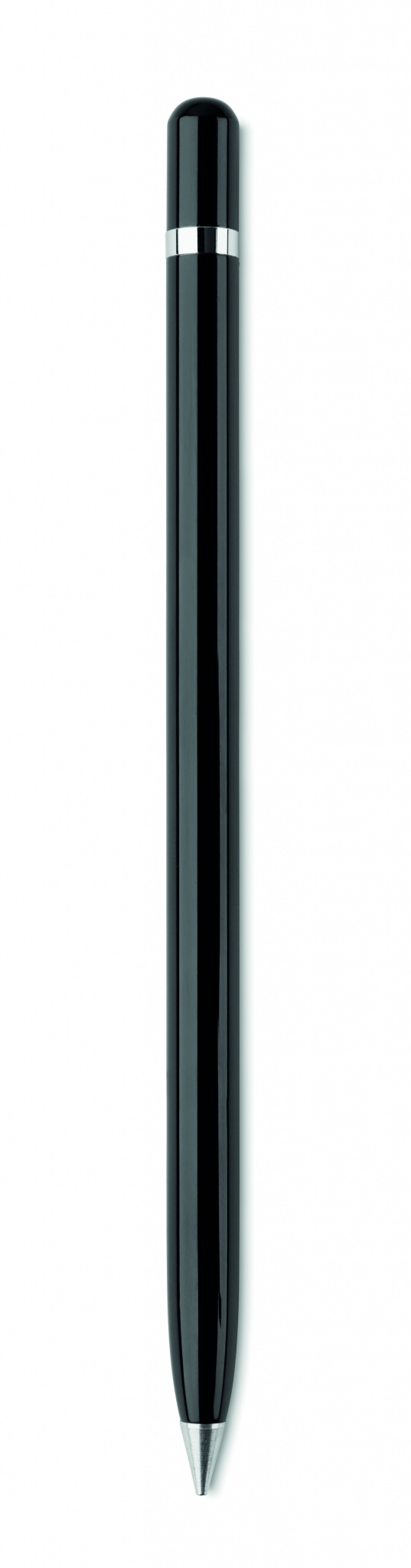 Langlebiges Schreibgerät aus Aluminium. Der Stift schreibt mit einer speziell legierten Mine. Die Schrift entsteht durch den Abrieb des Metalls. Graue Schriftfarbe. Nicht radierbar.