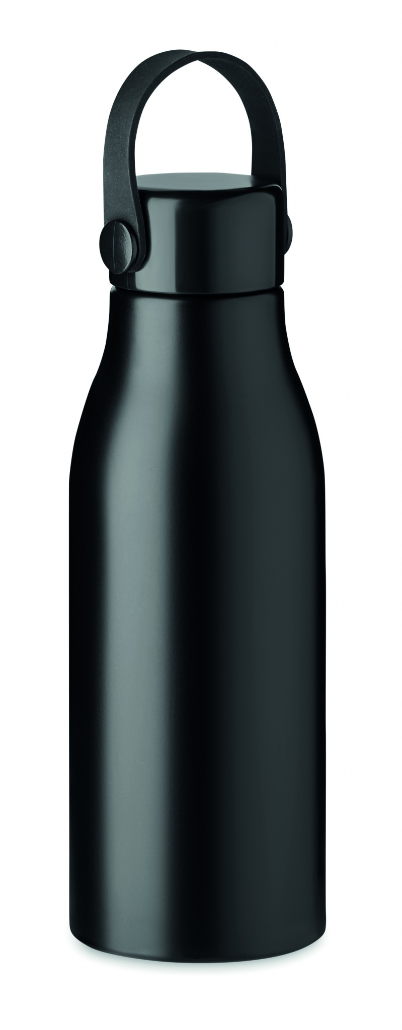 Single wall aluminium bottle with ABS lid with silicone hanger. Capacity 650 ml.