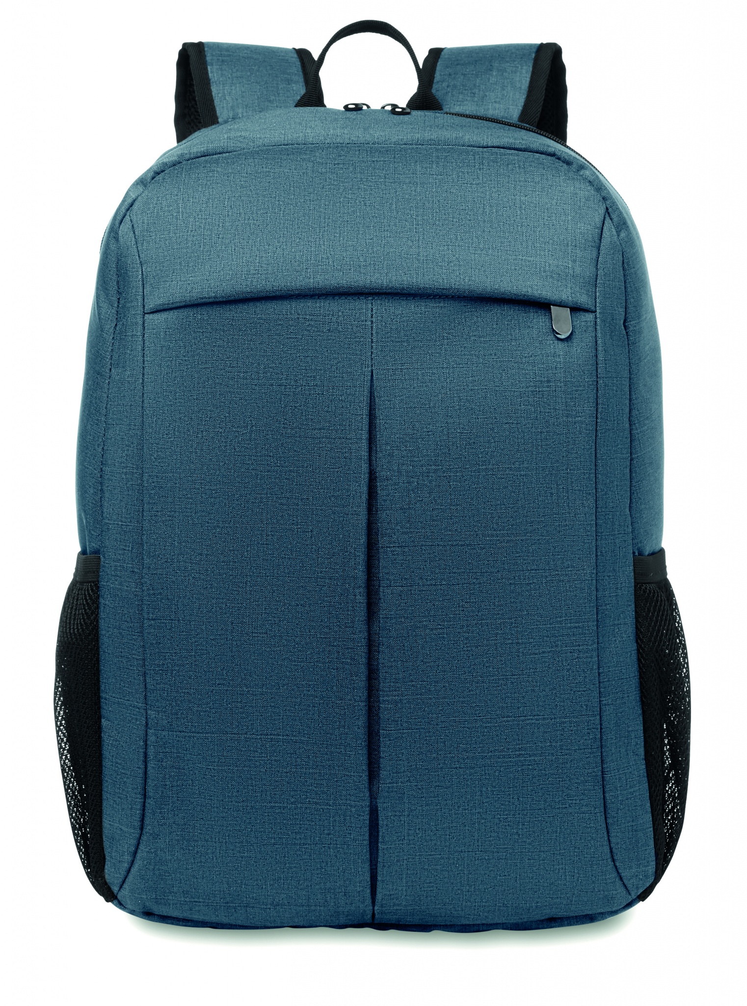 15 Inch computer backpack in 360D 2 tone polyester. Includes one internal 15 inch laptop compartment and one main front part with zipper pocket. Padded back and shoulder straps. Additional pocket for Tablet compartment. Trolley holder back side.