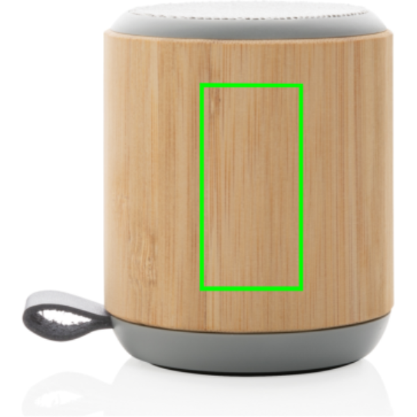 Bamboo 3W speaker with built-in 300 mAh lithium battery. With playing time of up to 3 hours on one single charge and operating distance of 10m using BT5.0. Made from natural bamboo and fabric.