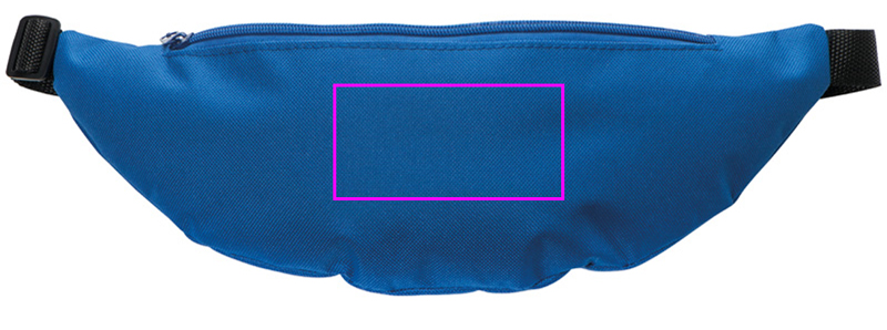 Belt bag in 600D polyester with zipped compartment, slide-in compartment, and adjustable shoulder strap. The logo is printed on the front center of the bag