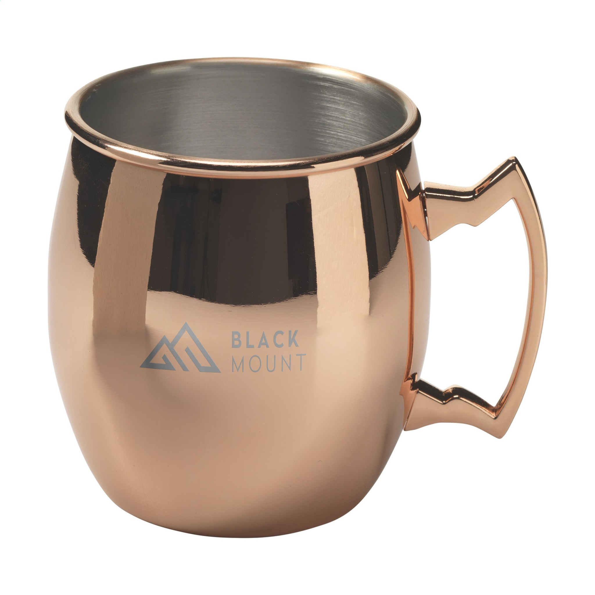Copper-coloured cocktail mug with beautiful handle made from recycled stainless steel. With polished, copper-coloured exterior and brushed stainless steel interior. This authentic mug is suitable for preparing and serving the tastiest cocktail creations. The outside fogs up in seconds. The material ensures that cocktails stay cold for a long time. A striking mug for a unique drinking experience. Not dishwasher-safe. Incl. user manual. RCS-certified. Total recycled material: 87%. Capacity 400 ml. Each item is supplied in an individual brown cardboard box.