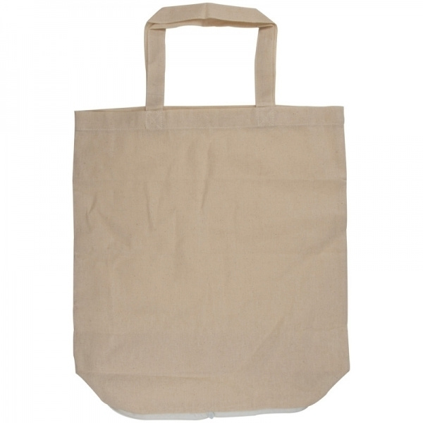 Natural colored, foldable and environmentally-friendly cotton bag (120g/m²) with carrying handle. We print your logo on one side.