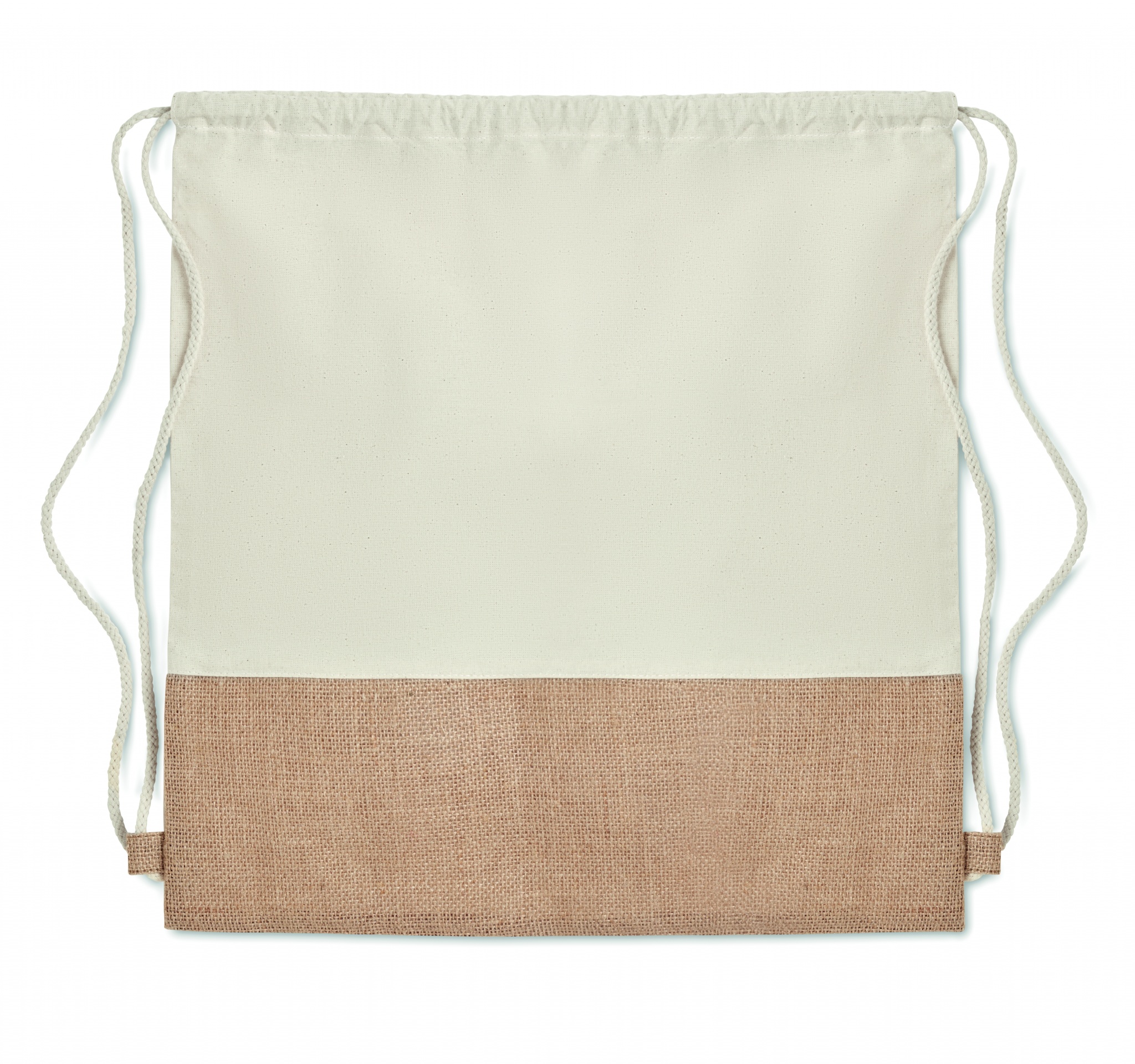 Twill cotton drawstring bag with jute detailing. 160 gr/m².