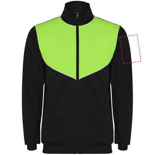 Tracksuit in lightweight and elastic fabric. Jacket with contrasting colour and sewing trims on the chest. High collar with contrasting seams. Center front zip. Side pockets. 2x2 ribbed cuffs and waist. Trousers with elastic waistband and drawstring. Contrasting side piece with sewing trim. Zipped hem.