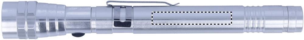 Extendable aluminium torch with 3 LED light and magnet on top and clip on side. 4 Batteries LR44 included. Maximum length 57 cm.