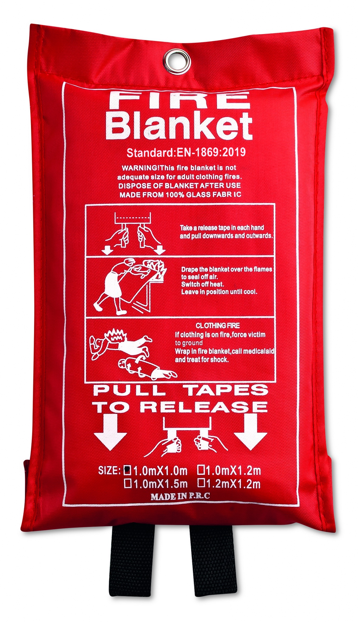 Fire blanket made of glass fibre presented in a PVC pouch. Blanket Size: 95x100 cm.