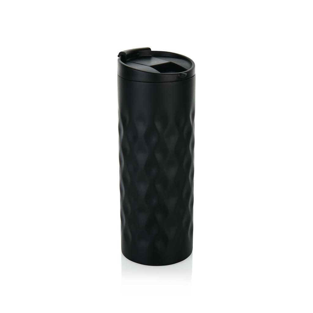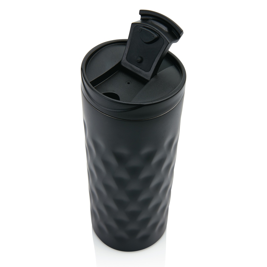 Stainless steel double wall tumbler, with a trendy geometric cut design. Capacity 350 ml.