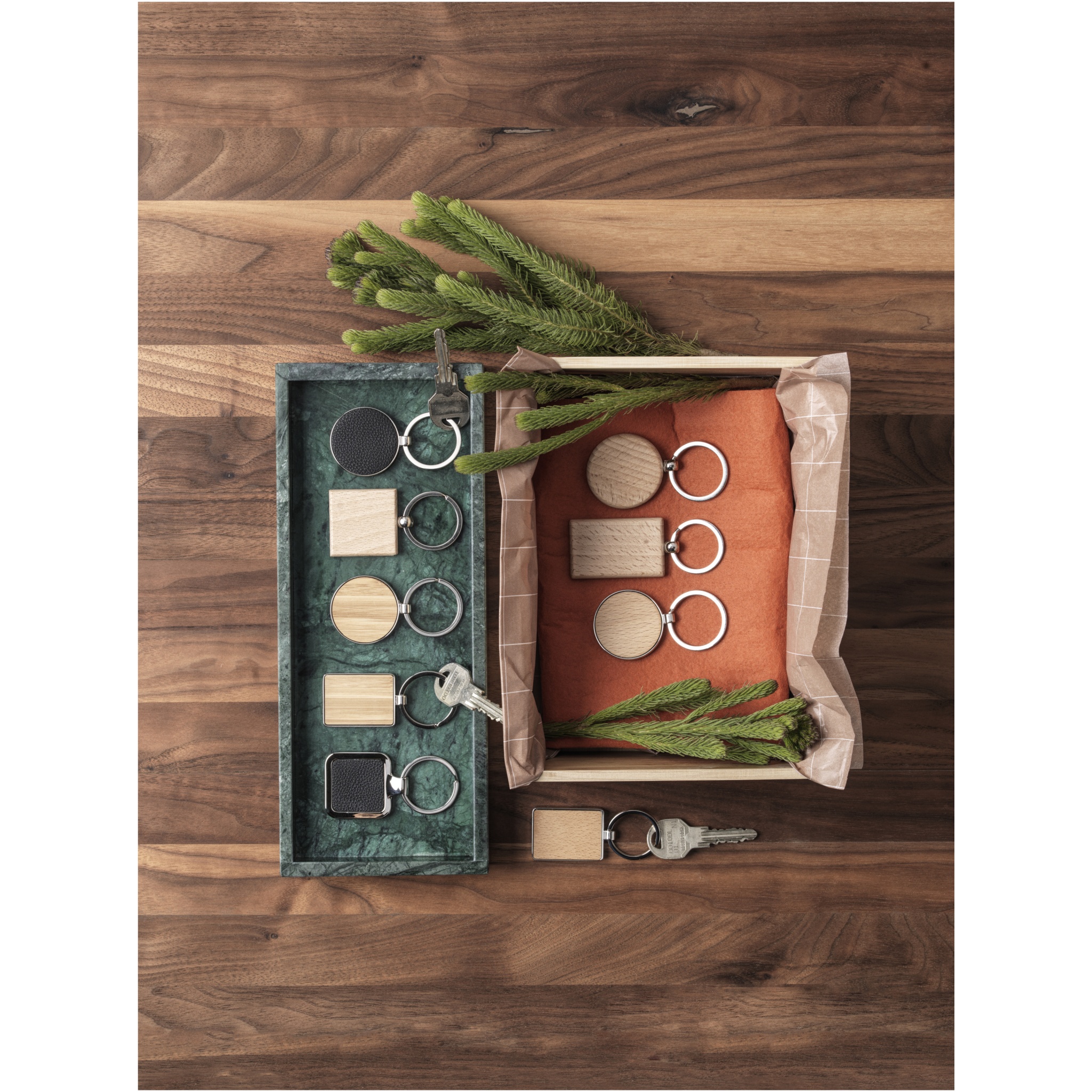 Rectangular keychain made of beech wood, supplied into a brown recycled Kraft paper envelope. The size of the keychain is 5.5 x 3.5 cm. Made for laser engraving.