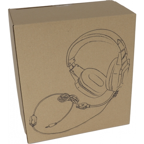 Headset with surround sound, microphone and volume control. With the integrated noise cancelling you won't hear any background noise. Your logo will be printed on one earcup.