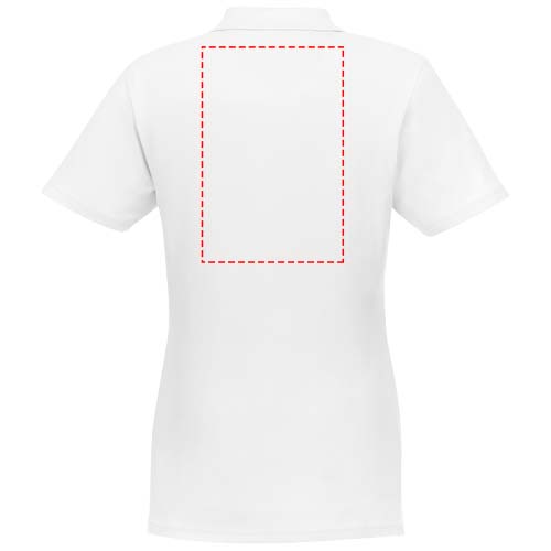 The Helios short sleeve women's polo combines refined style with unique custom branding options, and it is designed with a fitted shape for a feminine look. Made from 180 g/m² cotton pique, it offers lightweight comfort and durability. The interior, including tearaway-cutaway main label, allows for custom logo placement, making it the perfect pick for any event. With a classic polo collar and short sleeves, it transitions effortlessly from casual to formal occasions. Multiple colours available to suit any brand.