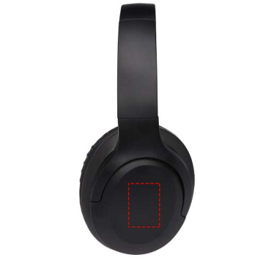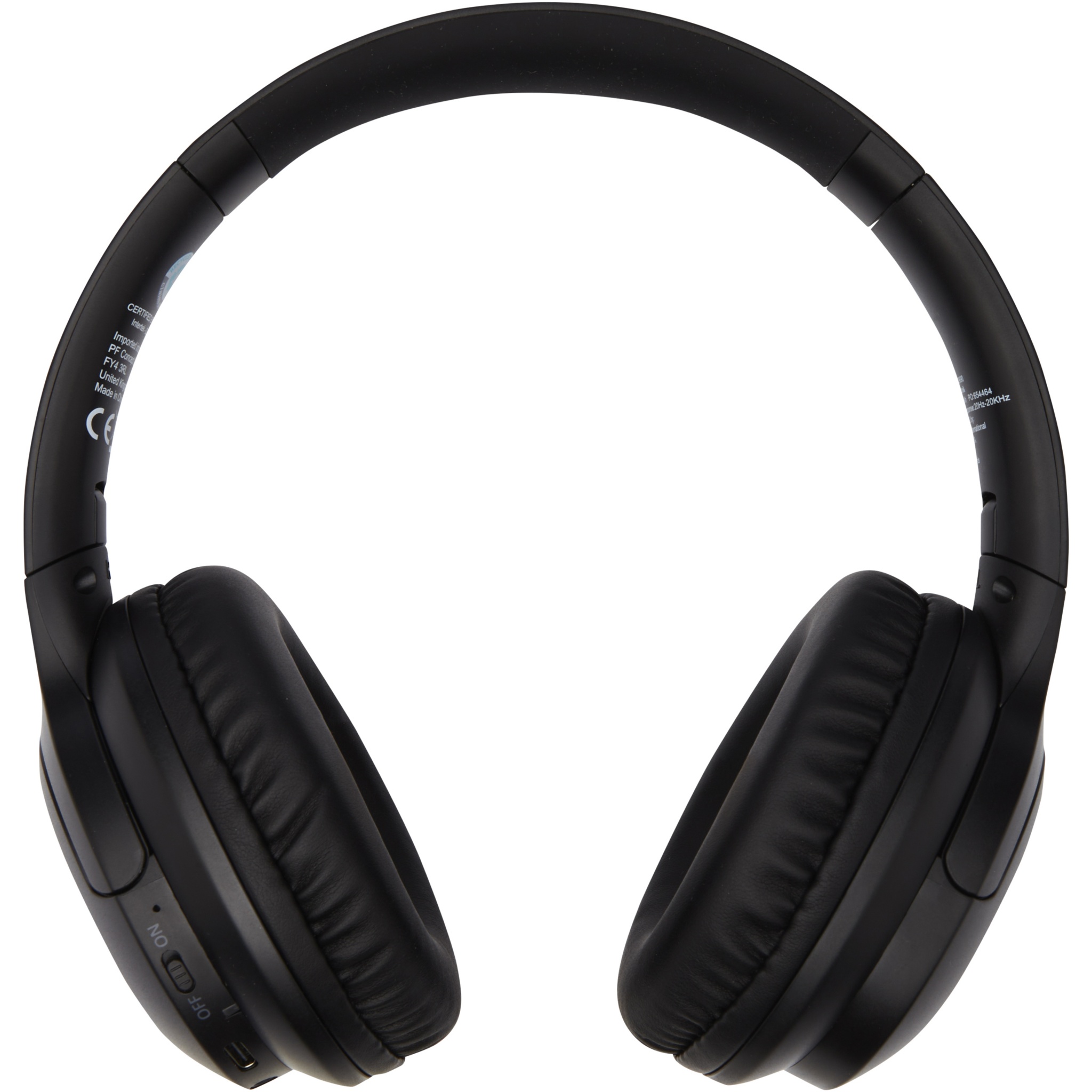 Wireless headphones made of recycled plastic. The headphones includes a microphone to answer phone calls, and the over-ear design of the earcups gives a fantastic sound experience. Bluetooth® 5.2 with a connection range of up to 10 meters. Ergonomic design with spongy earcups for a comfortable fit. The earcups can be folded up and rotated. The built-in 300mAh rechargeable battery provides up to 12 hours playback time at max volume. Delivered in a gift box with an instruction manual (both made of sustainable material).