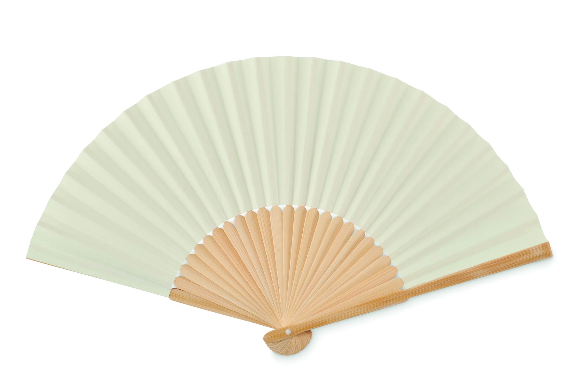 Manual hand fan in bamboo with paper fabric. Bamboo is a natural product, there may be slight variations in colour and size per item, which can affect the final decoration outcome.