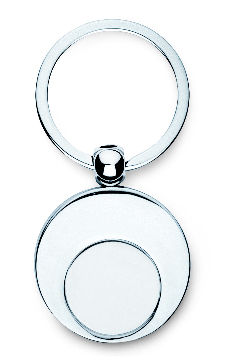 Round shaped metal key ring with trolley token.