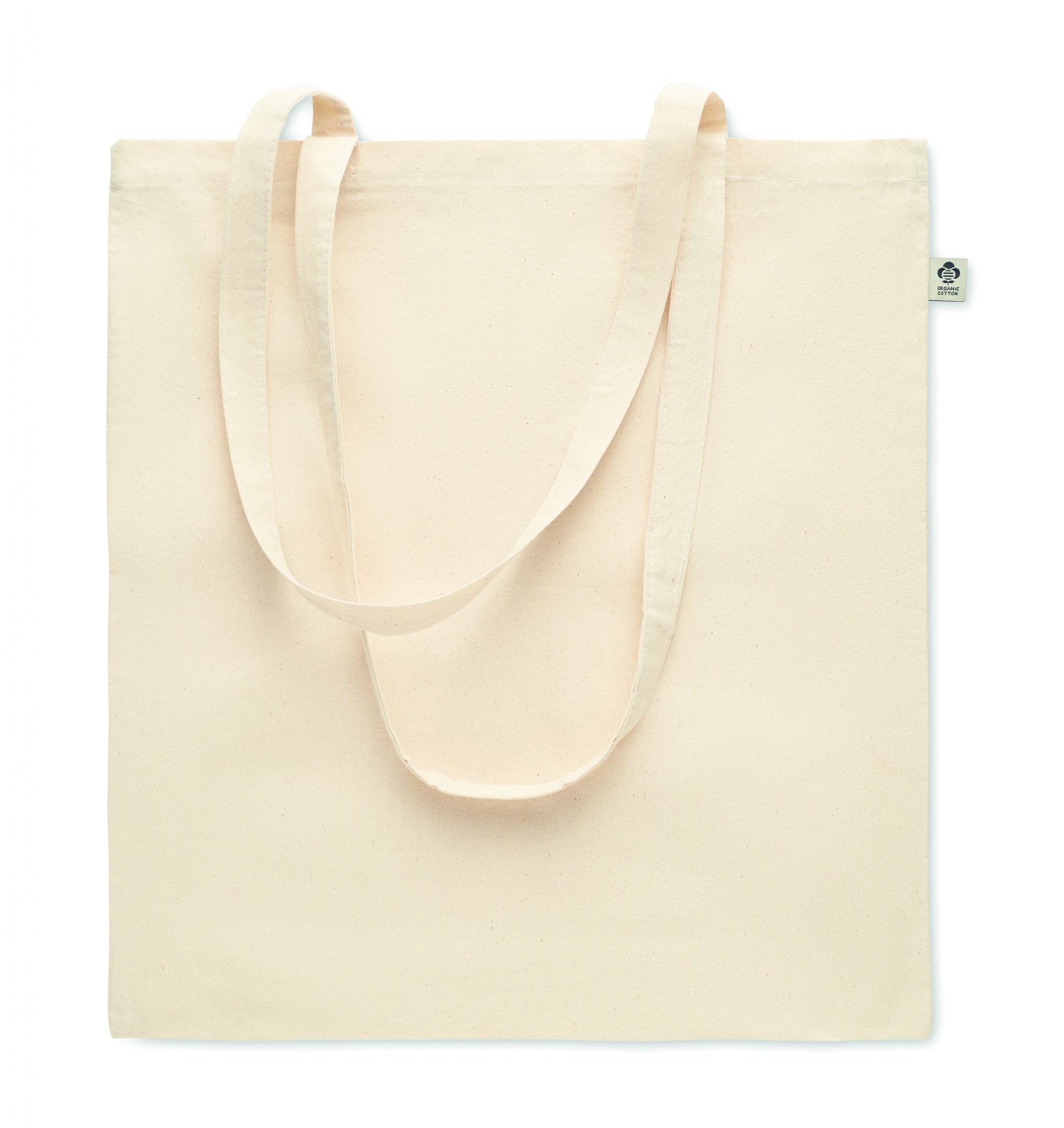 Organic cotton shopping bag with long handles. 180 gr/m².