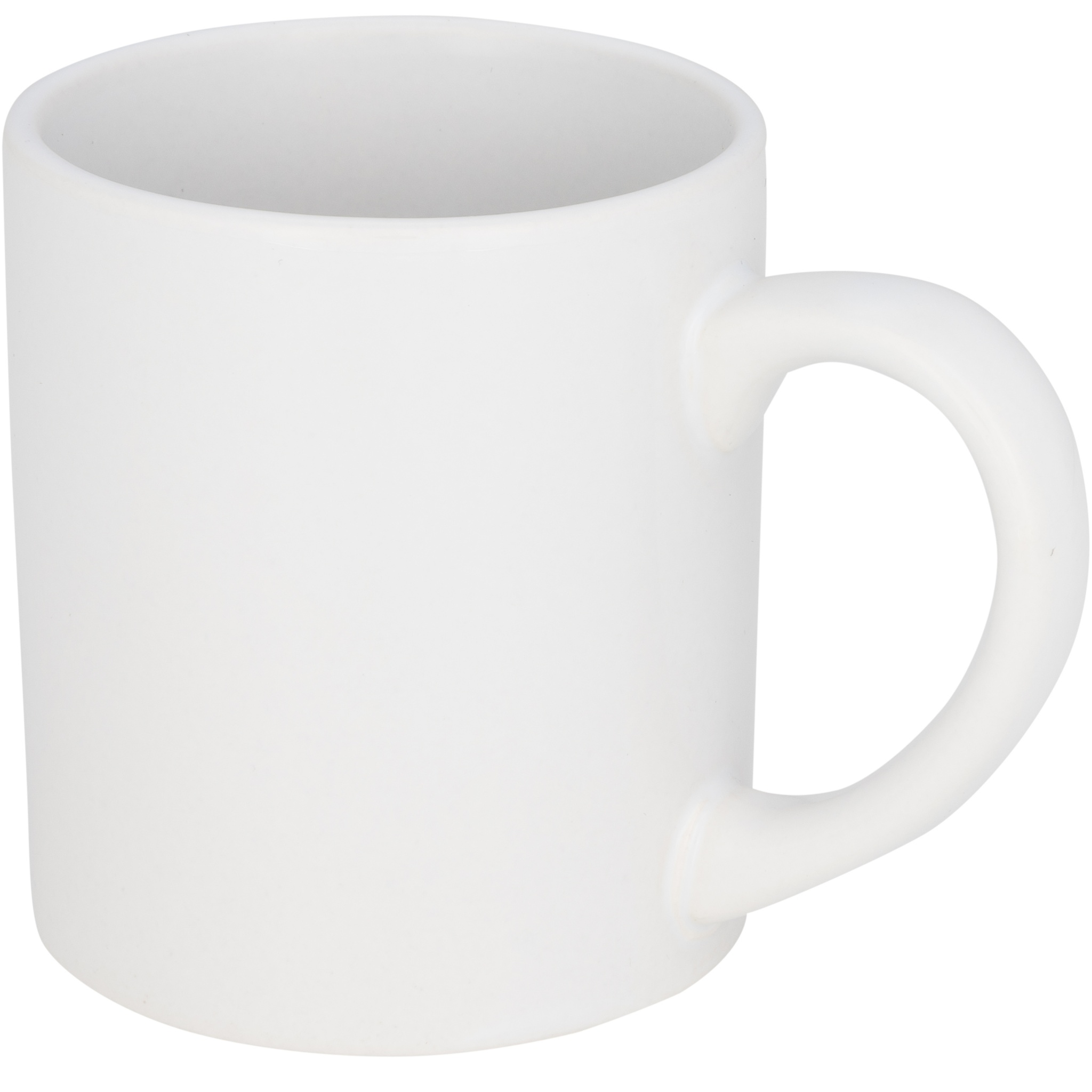 This ceramic mug has a special coating for sublimation. Volume capacity is 210ml. Presented in a white carton box.
