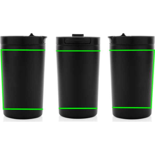 This double wall vacuum leakproof lock mug is the perfect size for your beverage. It's leakproof sealed flip lid is designed for easy open/close and on-the-go use. Vacuum insulation keeps beverages hot for up to 5 hours and cold for up to 15 hours. Made with RCS (Recycled Claim Standard) certified recycled materials. RCS certification ensures a completely certified supply chain of the recycled materials. Total recycled content: 80% based on total item weight. Capacity 300ml. BPA free and hand wash only.