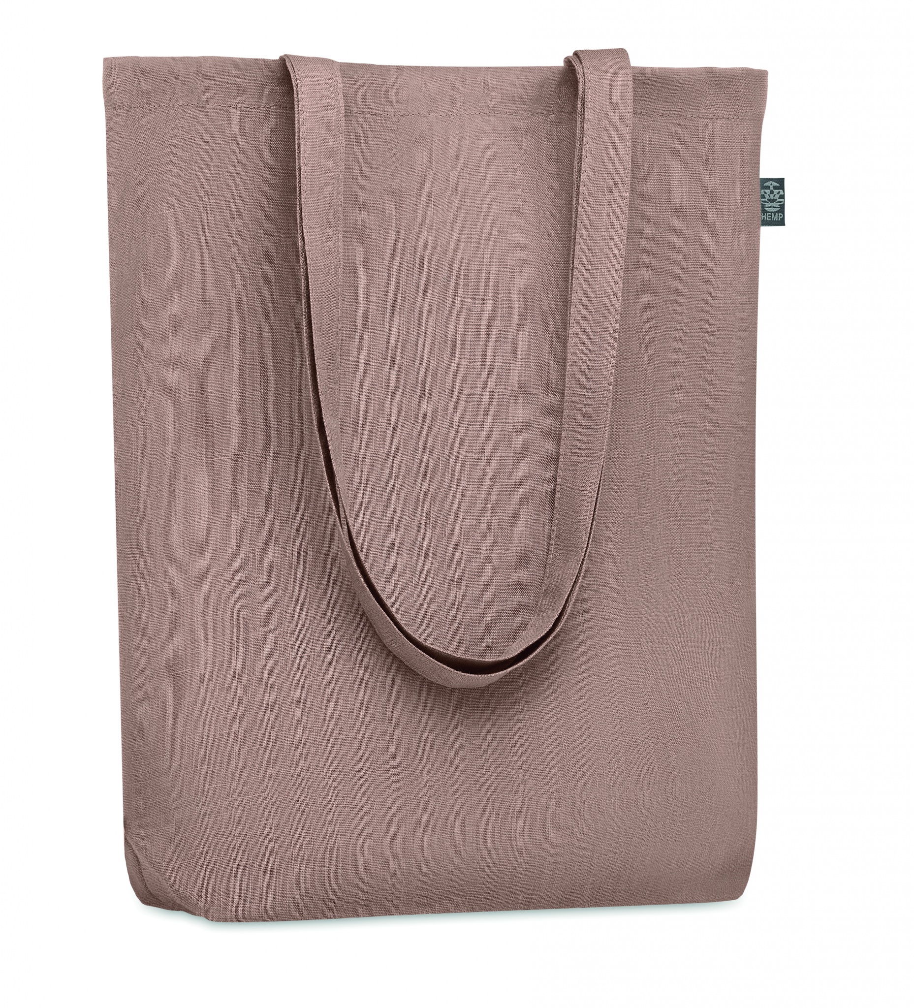 100% hemp fabric shopping bag with long handles with gusset in the bottom. 200 gr/m².