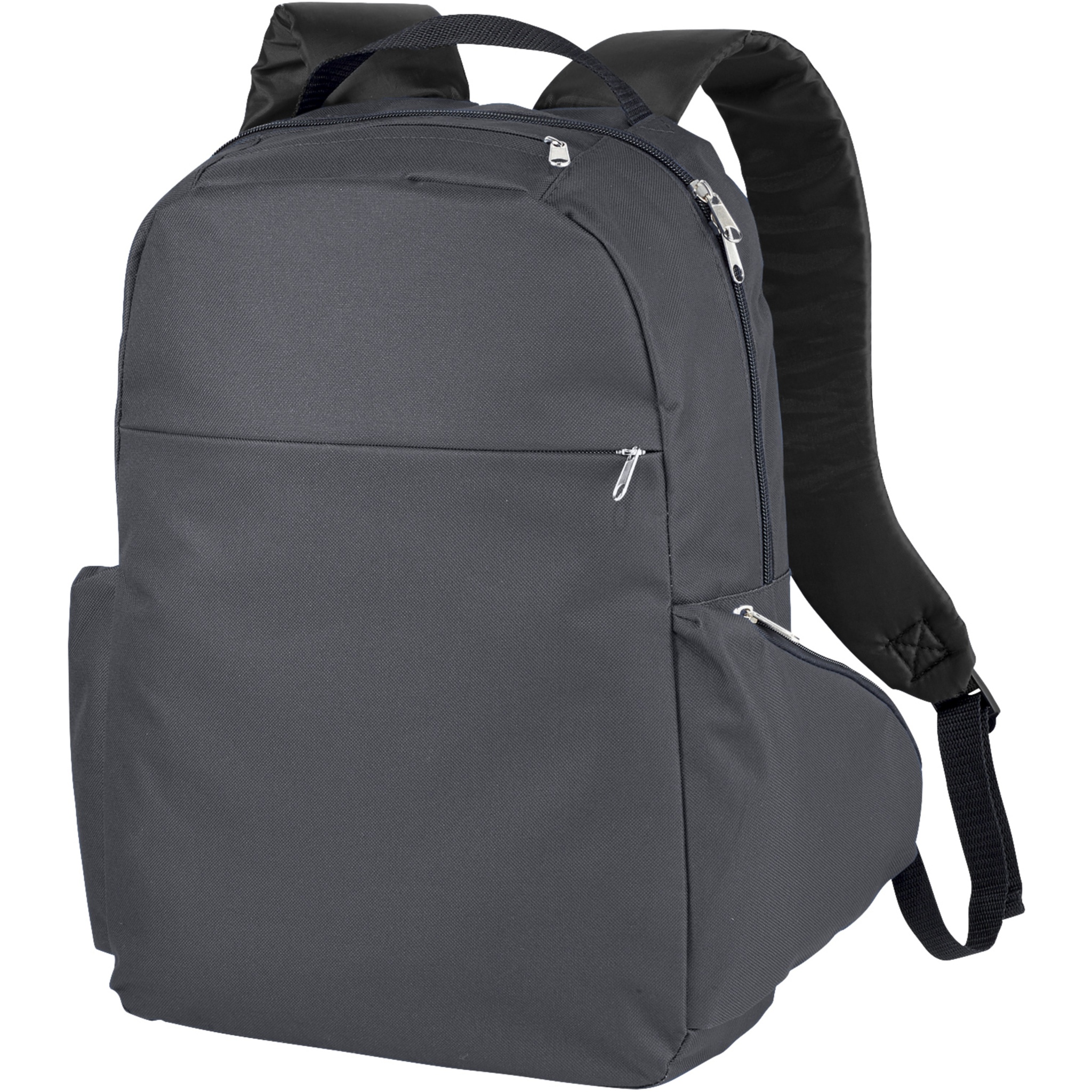 Large double zipped main compartment with padded laptop sleeve that can hold up most 15" laptop. Four additional zipped organizational pockets for all your technology essentials. Two side zipped compartments ideal for cables, chargers, etc. Large zipped front pocket. Top zipped pocket for quick access. Padded back panel. Double padded adjustable shoulder straps. Top carry handle. Accessories not included.