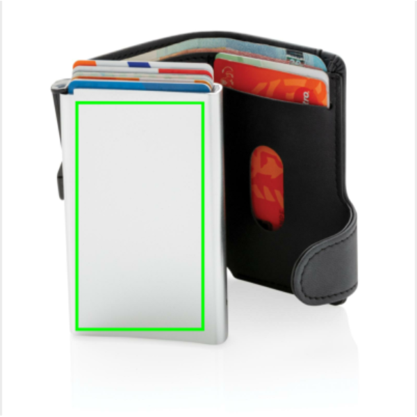 This solid aluminium cardholder with PU wallet protects your most important cards against electronic pickpocketing. No more broken or bent cards! It can hold up to 10 cards or 6 embossed cards. The easy side slider will push the cards up gradually.