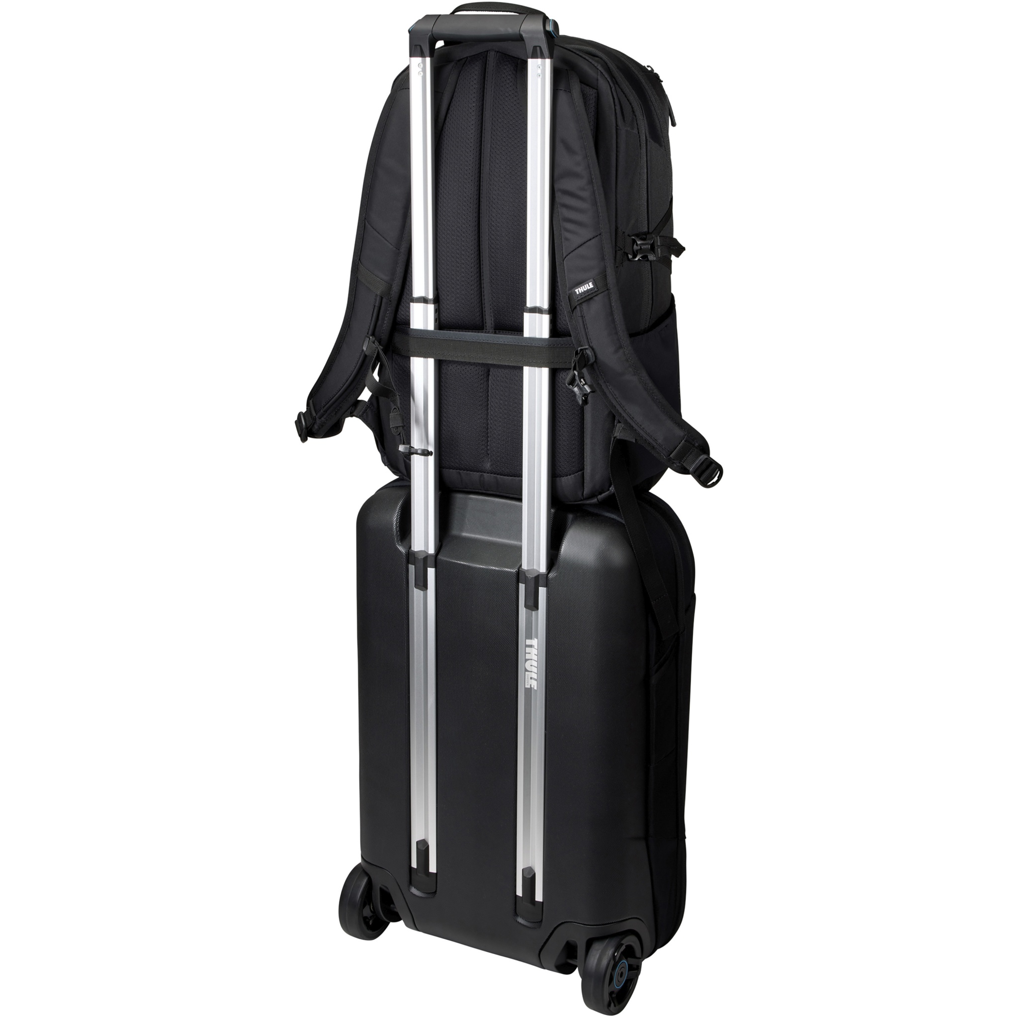 A versatile outdoor-inspired backpack that has multiple storage solutions to keep you organized on-the-go. Features elevated, dedicated pockets fitting a 16" MacBook® or 15.6" PC, and a 10.5" tablet, as well as an organization panel for smaller accessories. The secondary compartment is suitable for storing a change of clothes, accessories, or other personal items. The backpack has a sternum strap, padded back panel with airflow channel, and side compression straps to balance the load, making it more comfortable to carry. Constructed with Bluesign® approved 400D nylon with YKK zippers.