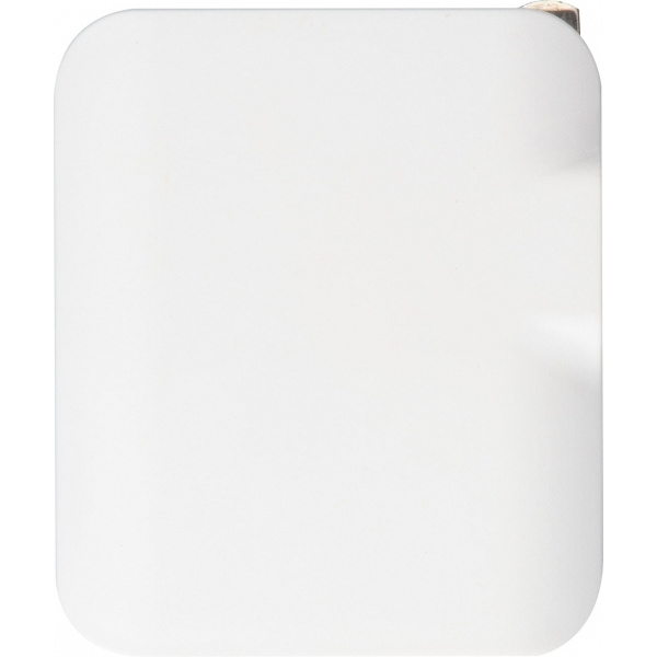 Travel Adapater for Europe, USA, UK and Australia. Featuring 2 USB outputs with 2.100 mA. Your Logo will be printed on one side of the adapter.