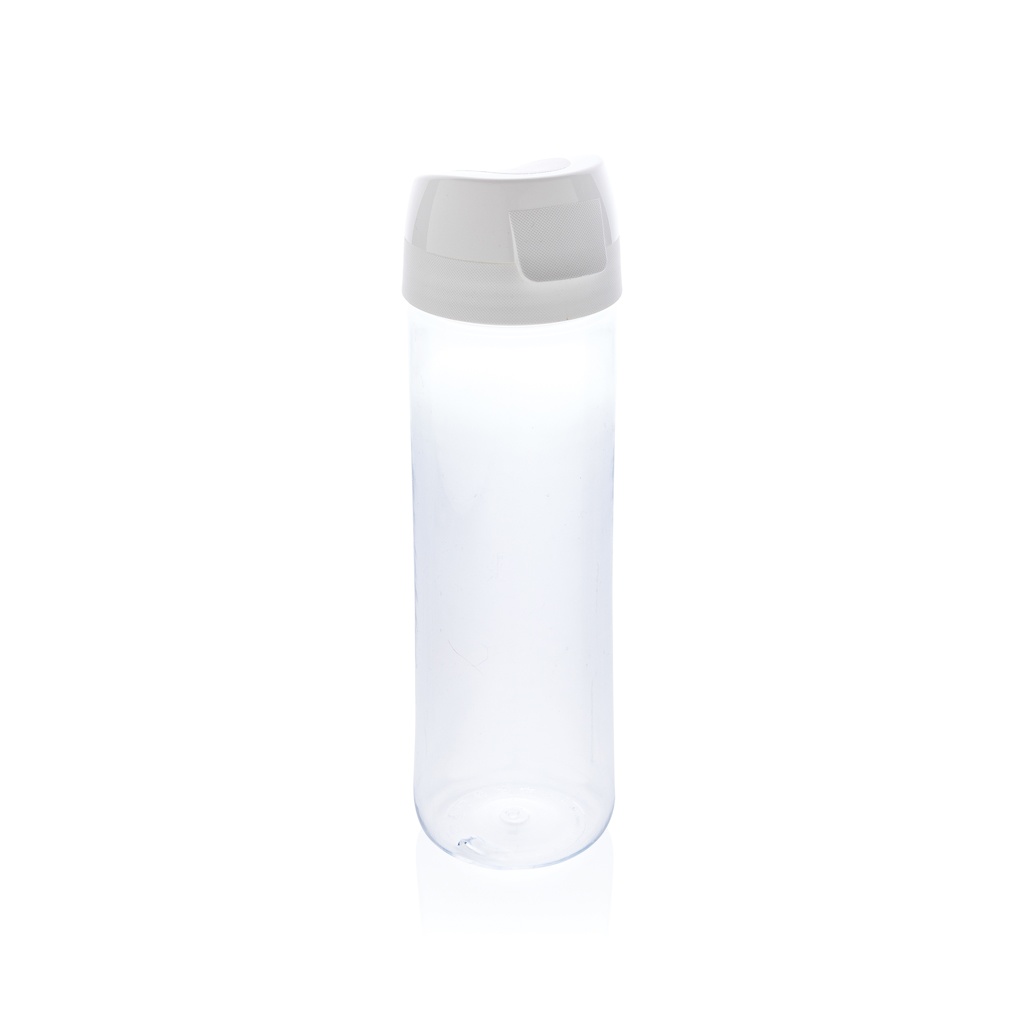 Made in Italy 0,75L water bottle with 1 hand opening. Made with Tritan™ Renew – an innovative plastic that utilises as much as 50% recycled material in place of fossil-based resources. Clear, clean and sustainable without any compromise on performance and durability. Recycled material verified by using ISCC Mass Balance Approach. Tritan Renew is powered by a unique process that breaks down waste plastic back into its basic chemical building blocks, allowing plastic materials to be recycled time and time again. This may cause minor imperfections on the product body but adds to its recycled character. Spill proof lid.