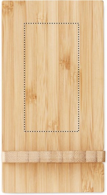 Double coil wireless charger stand in bamboo. Place smartphone on it to begin charging. It includes 2 parts, assembly required. Output: DC 9V/1.1A (10W) for quick charging. Compatible with latest Androids, iPhone® 8, X and newer. Bamboo is a natural product, there may be slight variations in colour and size per item, which can affect the final decoration outcome.