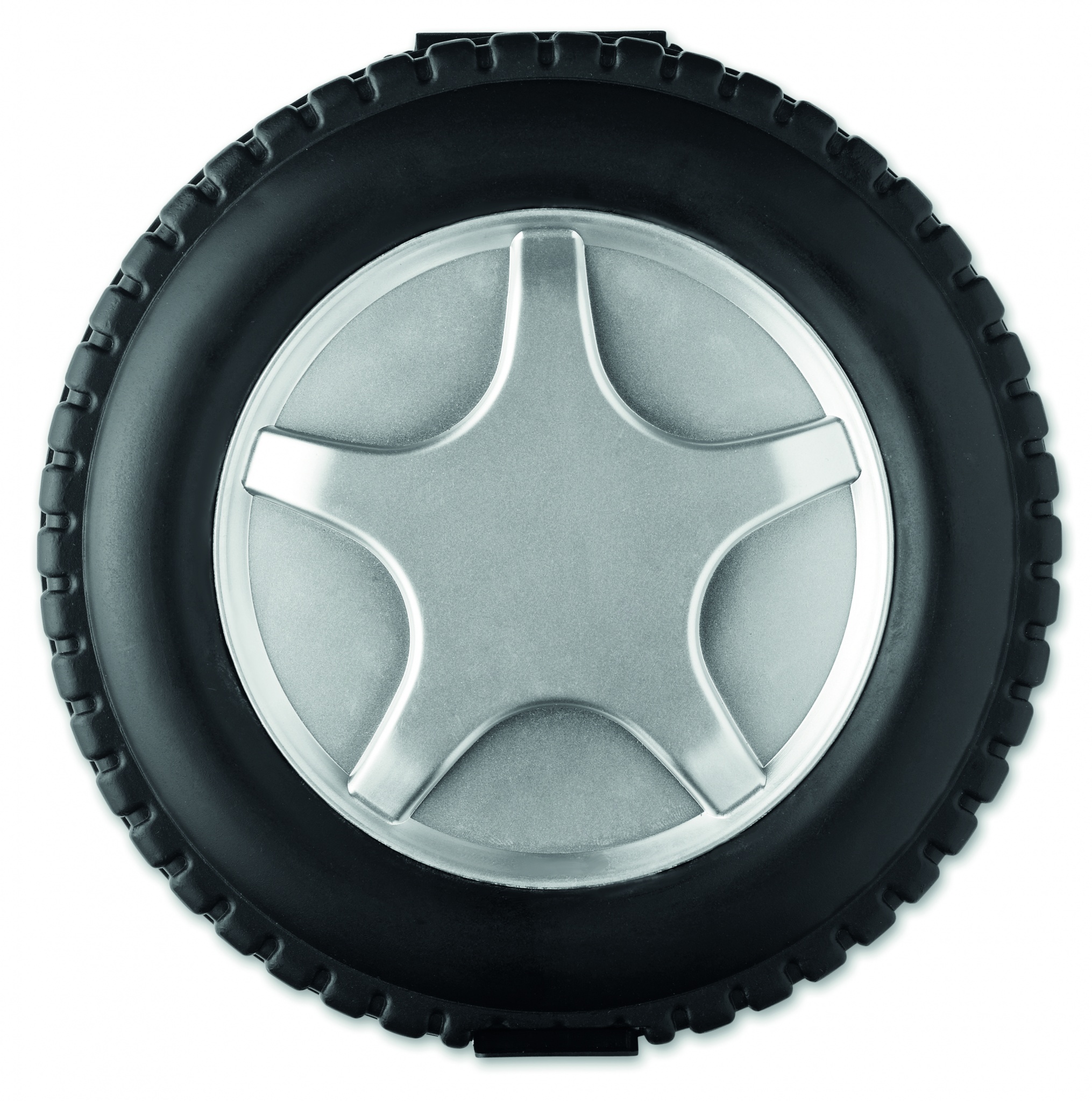 25-osaline tööriistakomplekt rehvikujulises karbis, mis sisaldab 1 pikendust, 1 pesakruvikeeraja, 1 ninatang, 5 pesa, 3 kuuskantvõtit, 10 otsiku komplekti, 2 täppiskruvikeerajat ja 1 teipi.