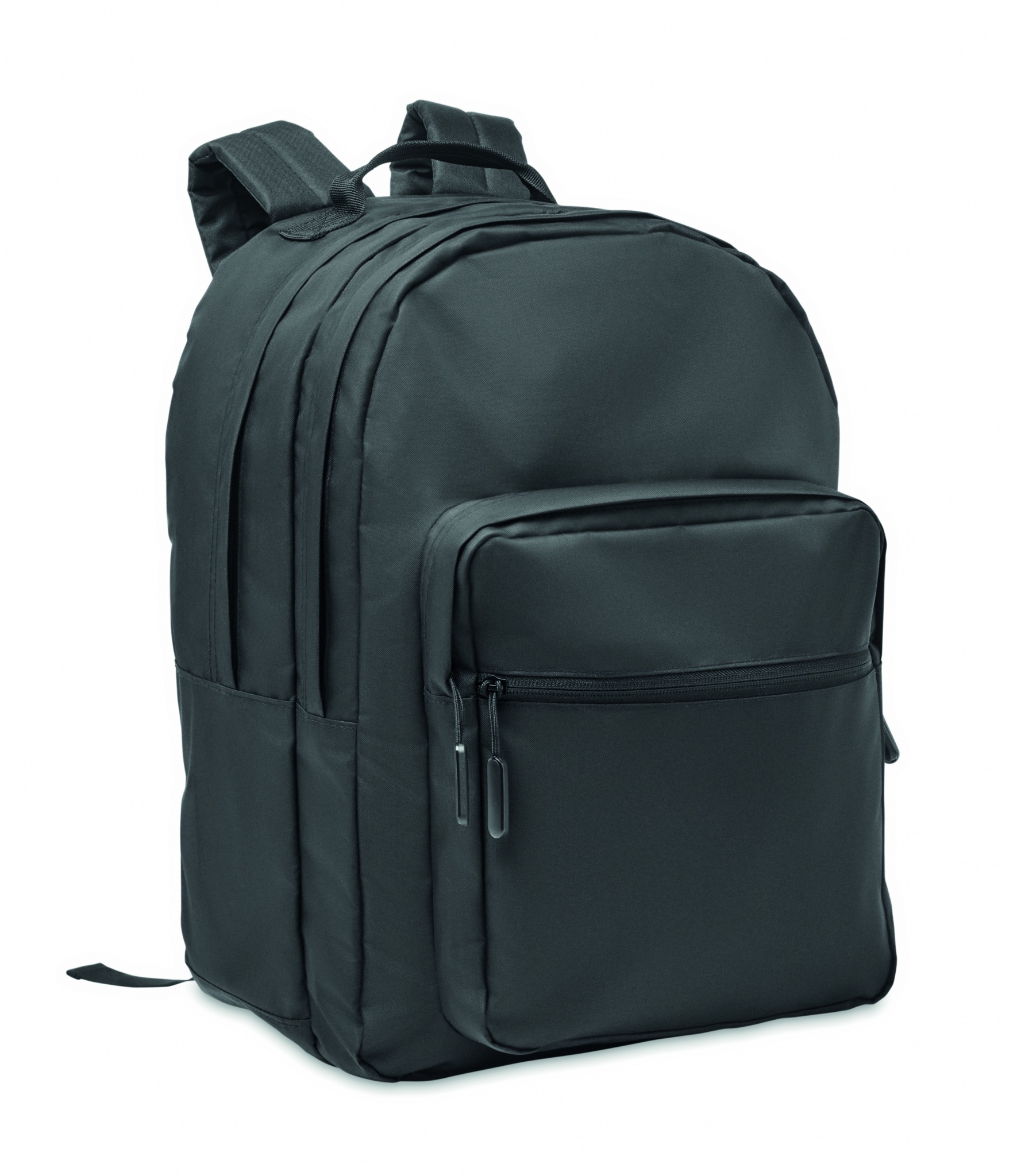 15-tolline sülearvuti seljakott 300D RPET polüestrist. Sellel on 2 suurt lukuga sektsiooni, topelt lukuga esitaskud ja võrgust küljetasku. Polsterdatud selja-, ala- ja õlarihmad.