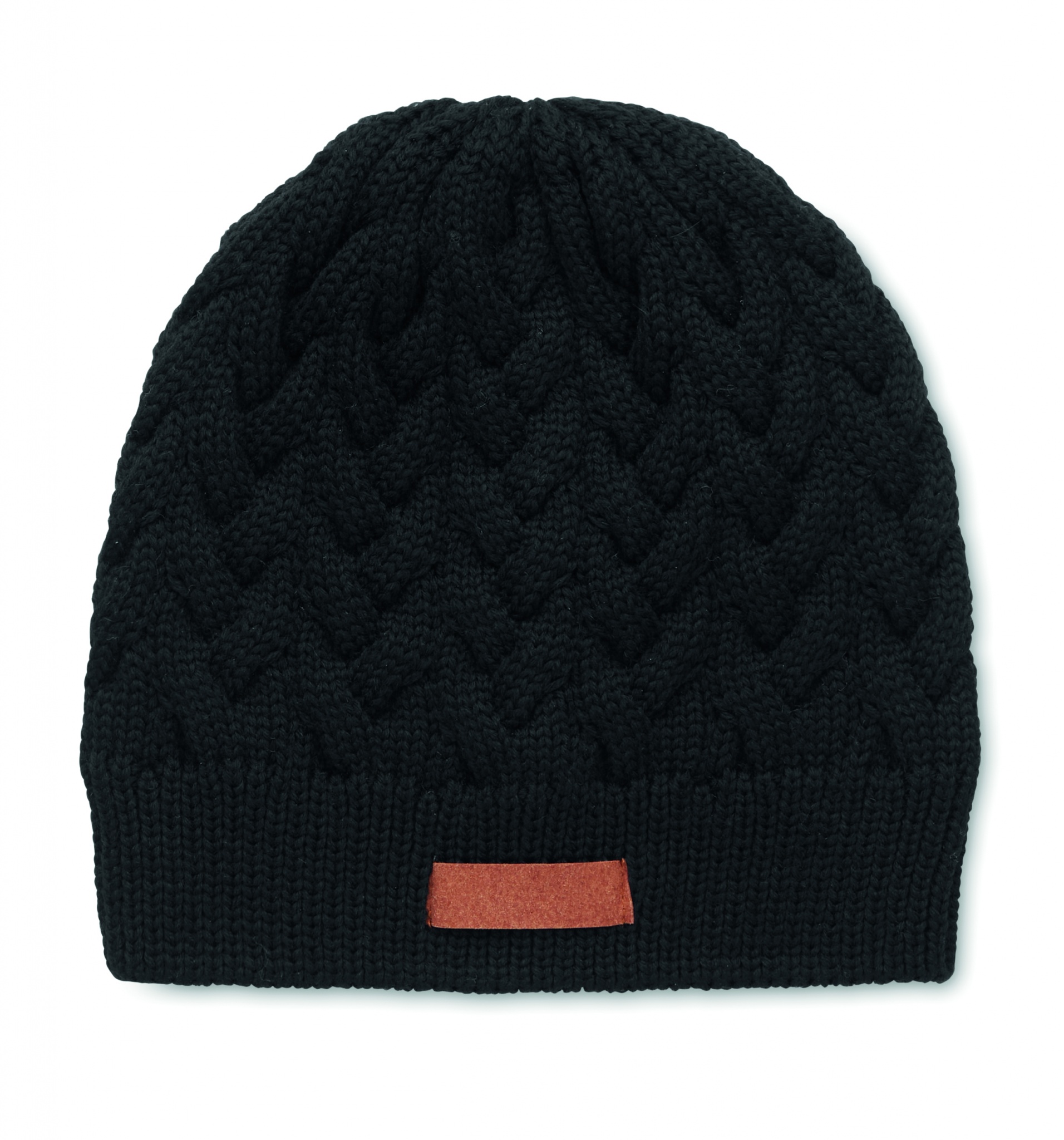 Kaabliga kootud nokamüts RPET-st, trükipiirkonna sildiga.