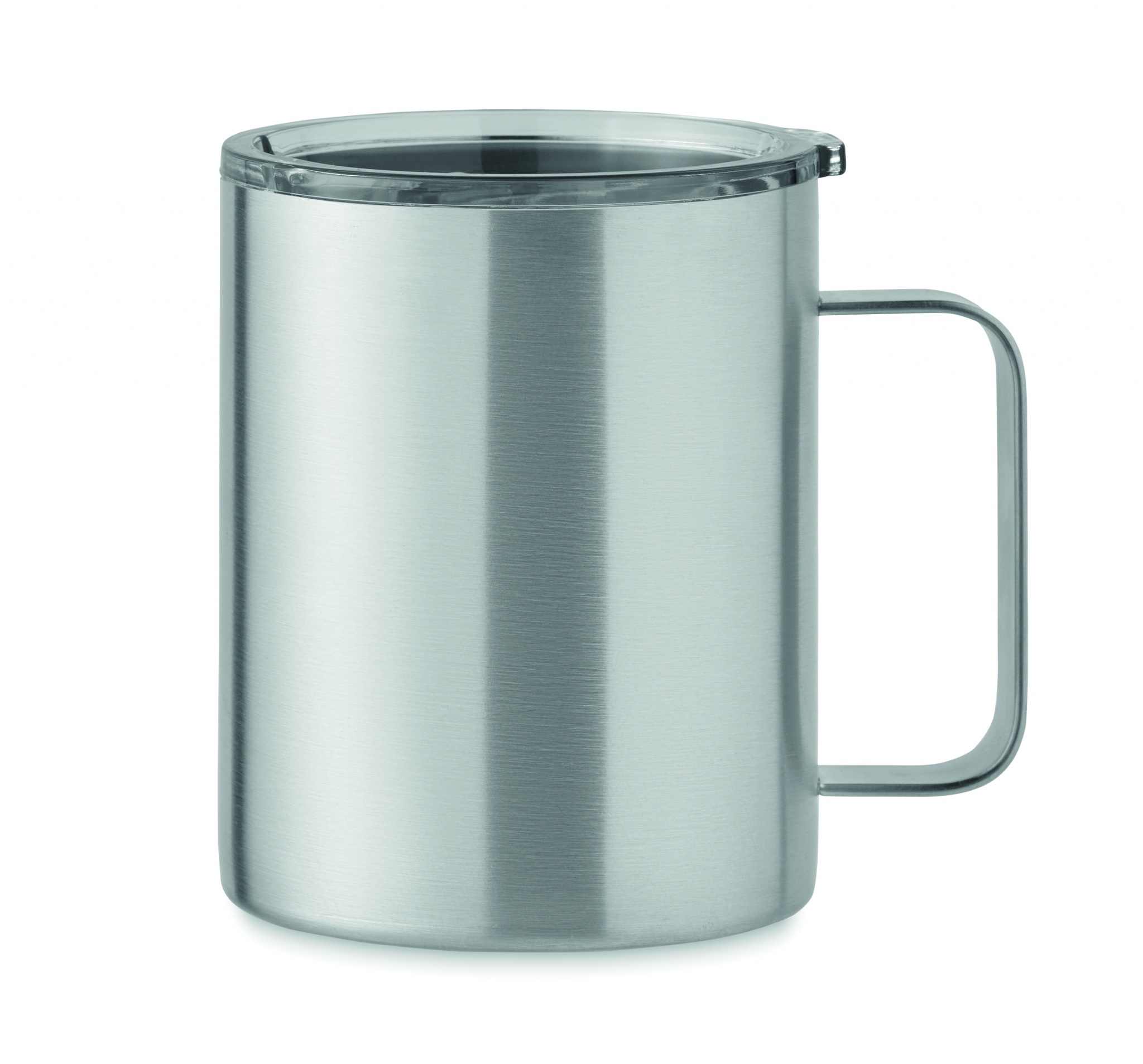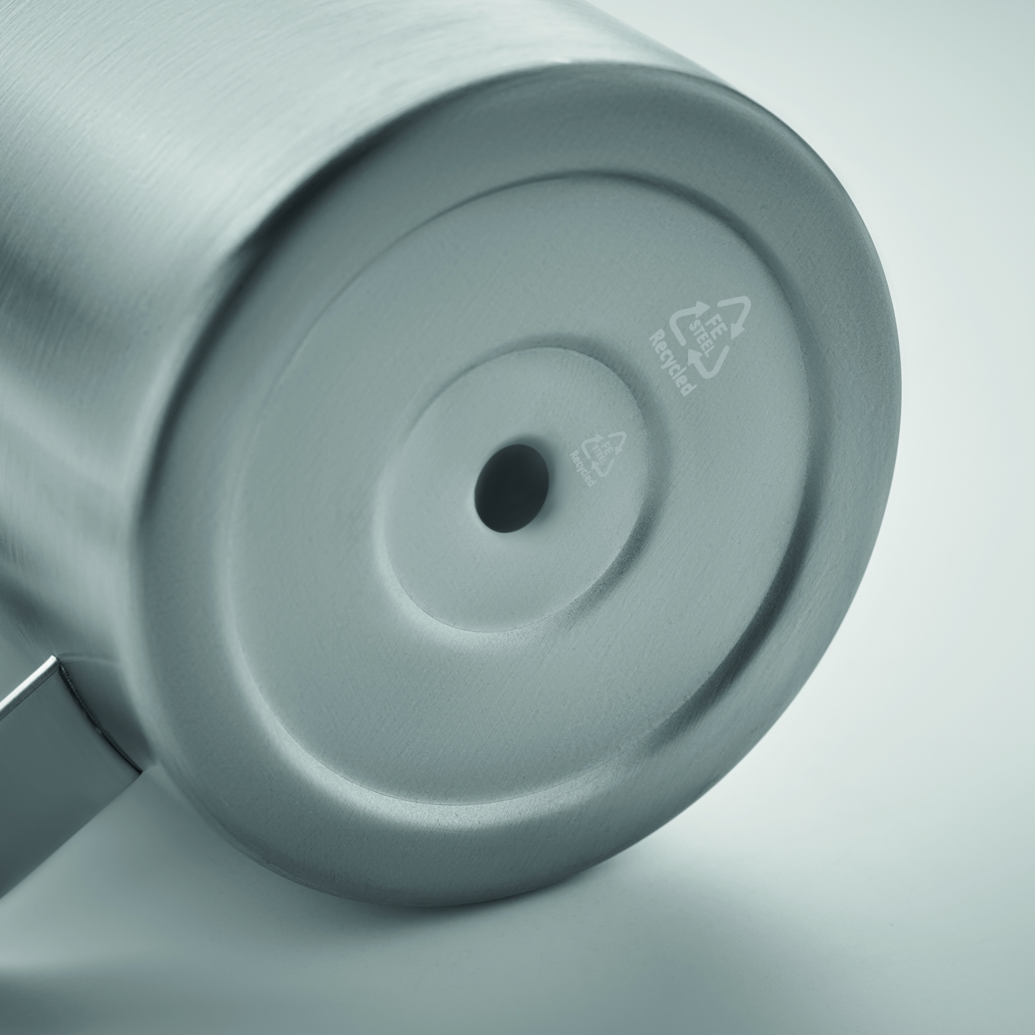 Topeltseinaga taaskasutatud roostevabast terasest (90% taaskasutatud roostevabast terasest ja 10% roostevabast terasest) lükandava sõõmuava kaanega kruus. Mahutavus: 300 ml.