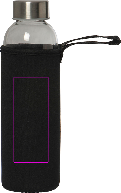 Roostevabast terasest kaanega klaasist lekkekindel joogipudel mahutavusega 500 ml. Pudel tarnitakse sobivas neopreenümbrises koos kanderihmaga. Trükime teie logo varruka keskele. Soovi korral on võimalik graveerida kaanele või pudelile ja trükkida pudelile.